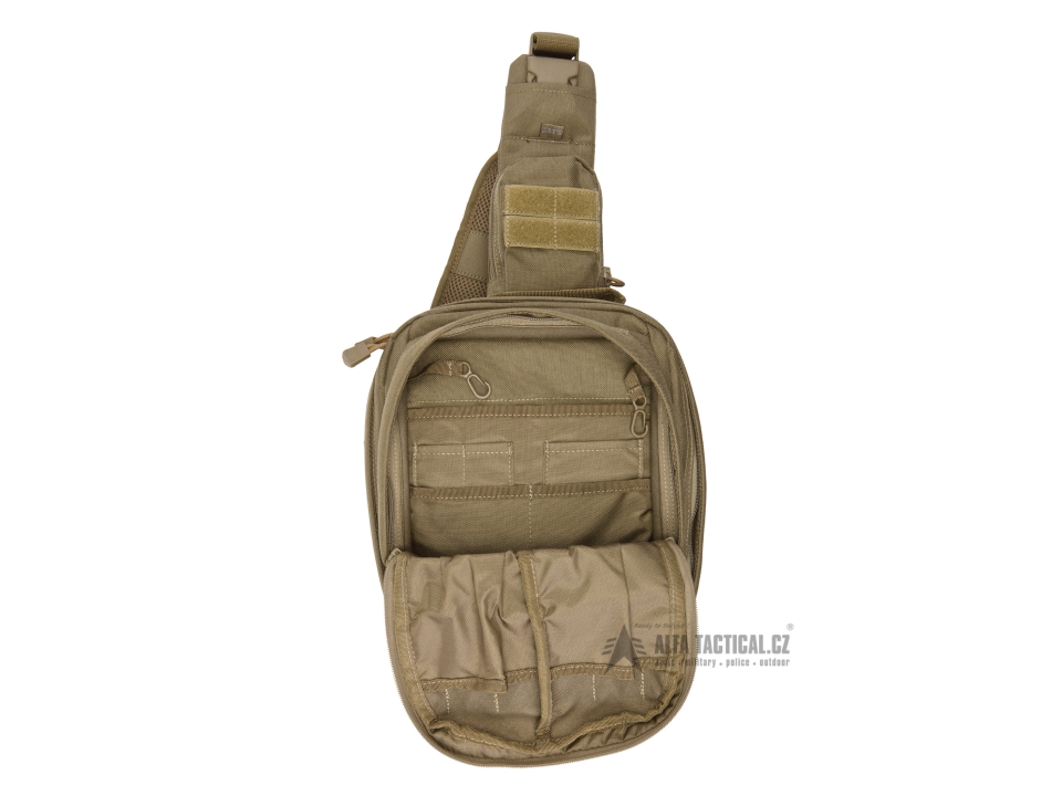 MOAB 6 (Mobile Attachment Bag Operation) je praktický malý batoh, který pojme veškeré denní vybavení. Délkově stavitelný a polstrovaný ramenní popruh je pohodlný a měkčená kapsa na něm umístěná pojme buď mobilní telefon, nebo menší tablet. Navíc je uzpůsobena pro vývod sluchátek. Uvnitř se nachází organizér, který pomůže udržet všechny drobnosti přehledně uložené. MOAB 6 je kompatibilní s RUSH TIER systémem, a je možné jej připnout k ostatním batohům z kolekce RUSH, nebo jiným vybaveným systémem MOLLE.