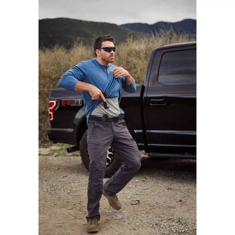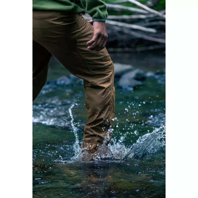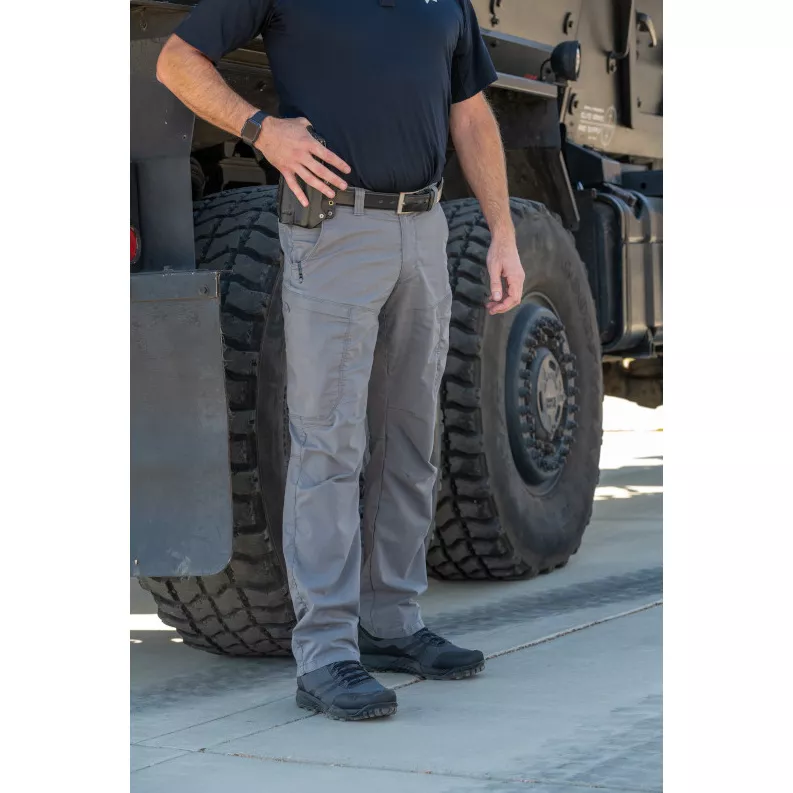 S celkem 10 kapsami, včetně vnitřní pružné manžety, skryté kapsy na klíče od pout, stehenních kapes na zip s vnitřním úložištěm na zásobník a hlubokých, vyztužených hlavních kapes, jsou služební kalhoty 5.11 Apex Pant připraveny k akci. Povrchová úprava Teflon® nabízí odolnost vůči skvrnám a nečistotám, díky čemuž jsou tyto kalhoty ideální pro taktické profesionály, kteří potřebují spolehlivé vybavení, které odolá úskalím jejich pracovního prostředí. Apex Pant jsou k dispozici v běžném střihu, s pohodlným pasem a vyztuženou konstrukcí pro optimální pohyb. Tyto odolné kalhoty mají také vyztuženou oblast klipu na nože na kapsách, tkaný štítek s logem 5.11® na spodní straně nákladní kapsy a výšivku Scope na středovém poutku na opasek vzadu. Zipy YKK® zajišťují bezpečné uzavření a dlouhotrvající výkon.