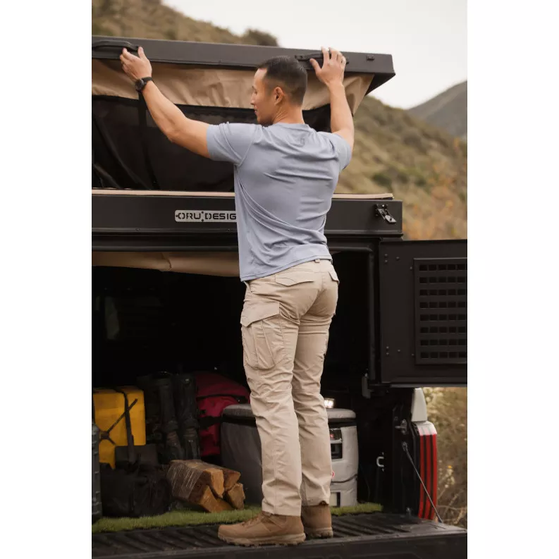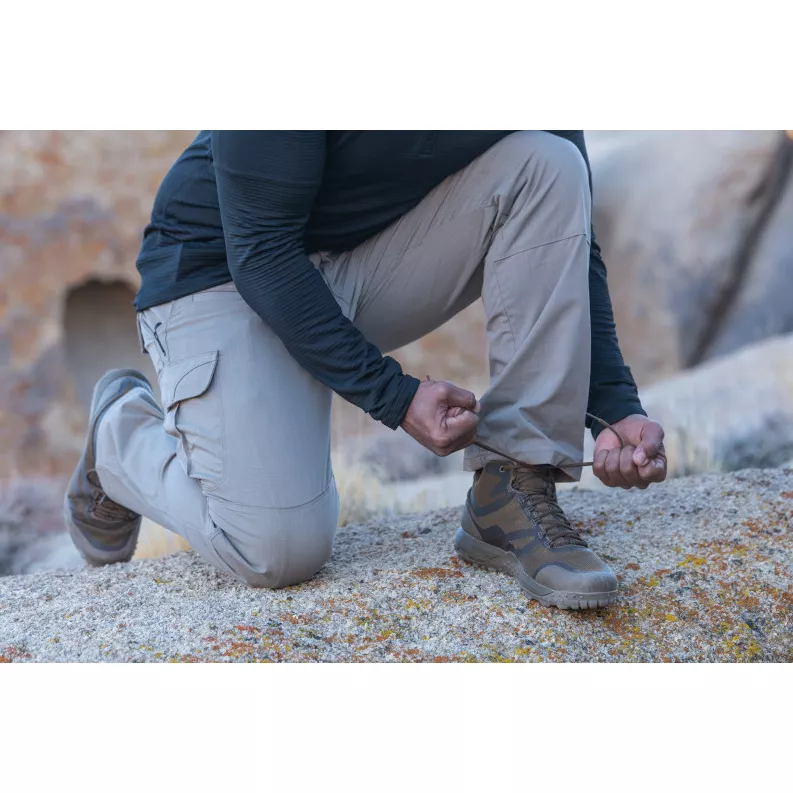 Samonastavitelný tunelový pas zajišťuje pohodlné a bezpečné nošení, zatímco klínová konstrukce a kloubová kolena poskytují maximální volnost pohybu. Vyztužení v klíčových oblastech, jako jsou hlavní švy a namáhané body, zaručují, že tyto všestranné kalhoty obstojí i při těch nejnáročnějších úkolech. Přední kapsy jsou speciálně navrženy pro uložení předmětů EDC. Kalhoty jsou dále vybaveny vysoce kvalitními zipy YKK® a patentkami Prym® pro větší spolehlivost. Kalhoty 5.11® Stryke® Pant také zahrnují charakteristické šikmé cargo kapsy, které se mohou pochlubit výraznými šikmými záhyby, exkluzivními zaoblenými rohy, asymetrickou klopou kapes a originálním obloukovým prošíváním. Tyto designové prvky nejen zvyšují funkčnost polních kalhot, ale také přispívají k jejich stylovému a modernímu vzhledu.