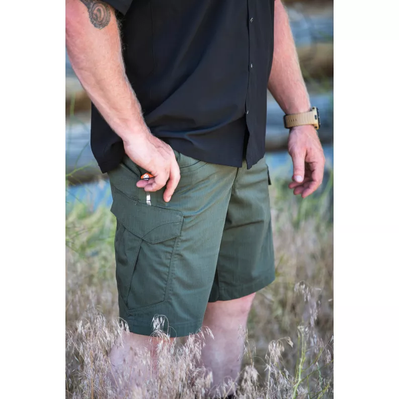 5.11 Stryke Short nabízí prostorné zadní a přední kapsy, nízkoprofilové cargo kapsy na bocích vybavené organizérem, prioritně pro zásobníky pušek AR (využijete i pro jiné vybavení). Klínový rozkrok umožňuje maximální rozsah pohybu.