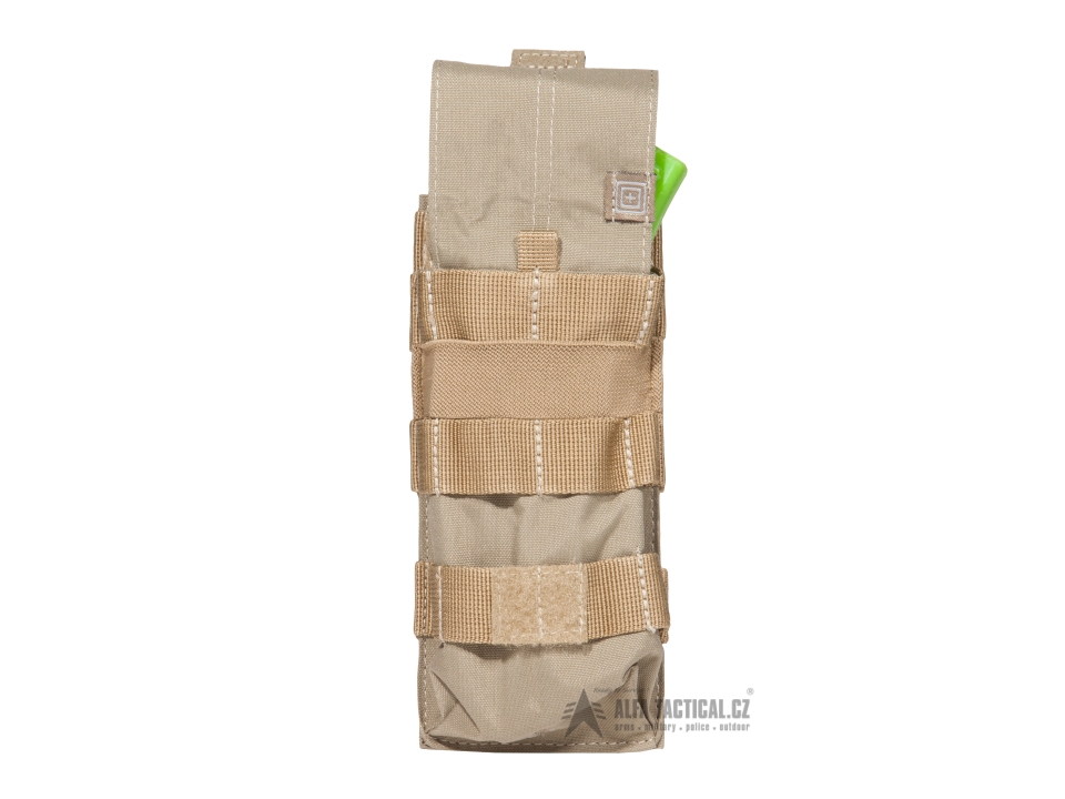 Sumka 5.11 Tactical s volitelným jištěním zásobníku, a to buď pomocí bungee lana, nebo krycí chlopně. Jištění je zároveň možné vyřadit a získat tak sumku jištěnou pouze samosvorem pro pohotové přebití zbraně.