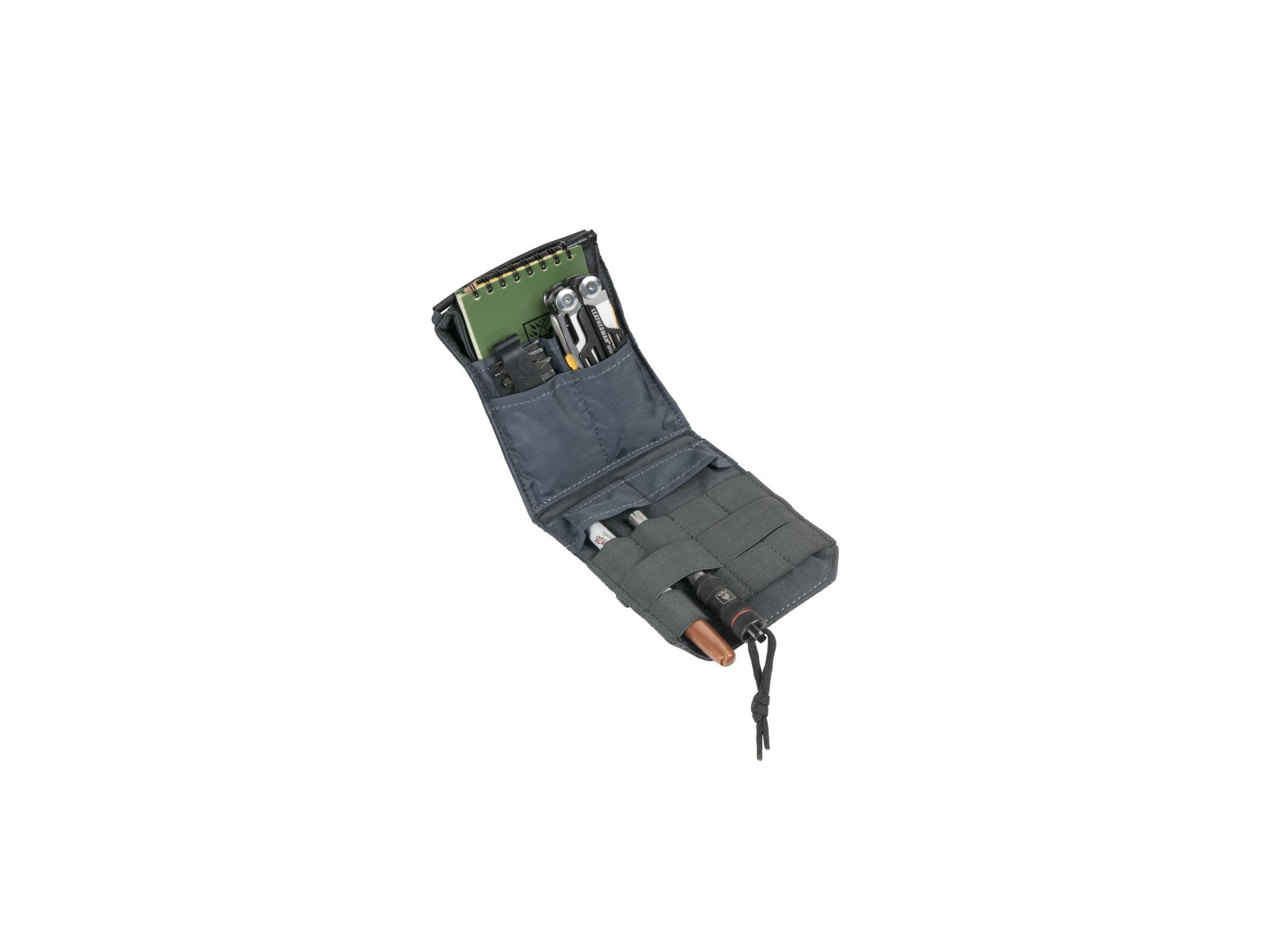 Toto nové pouzdro umožňuje pohodlně přenášet a třídit všechny nejrůznější potřeby, jako jsou powerbanky, paměťové karty, pera, rukavice první pomoci atd. Přední část pouzdra má větší kapsu na suchý zip pro velký smartphone nebo externí disk. Klopa kapsy má na sobě ID panel se suchým zipem.