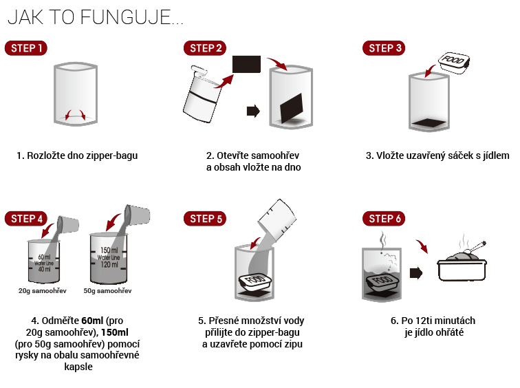 - Jídlo je možné jíst rovnou z balení, tedy i bez ohřevu (na rozdíl od sterilovaného jídla).