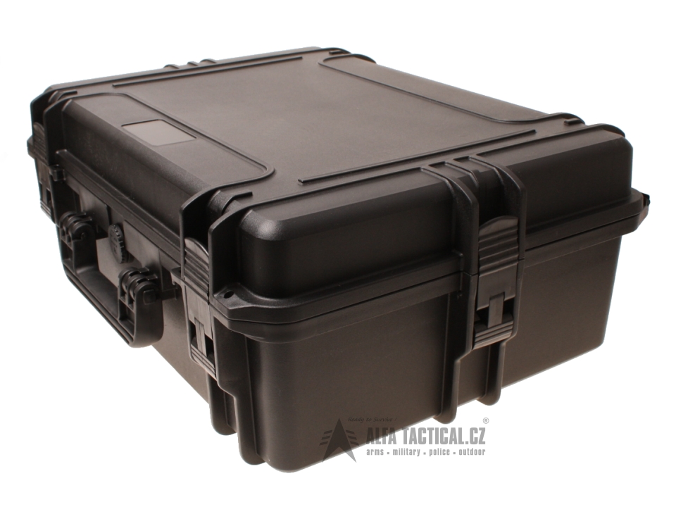 Vodotěsný kufr pro vybavení s třípatrovou předřezanou pěnovou výplní, automatickým vyrovnáváním tlaku, možností uzamčení na 2 visací zámky, ponosovou rukojetí a uzavíráním ve 4 bodech z kvalitního odolného polymeru.