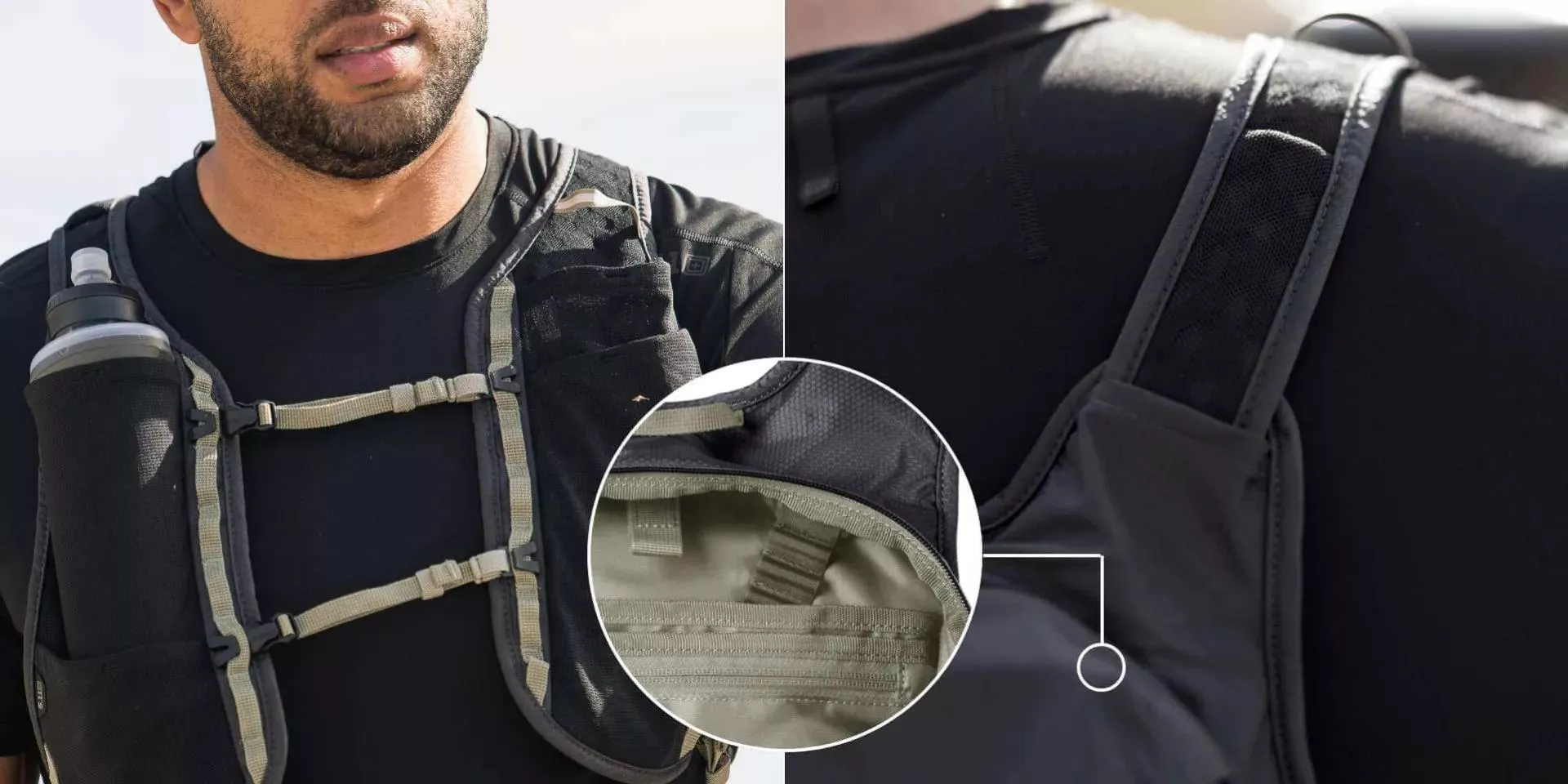 - Několik náprsních kapes na zip pro snadný přístup k malým předmětům nebo 500 ml SoftFlask (prodává se samostatně)
