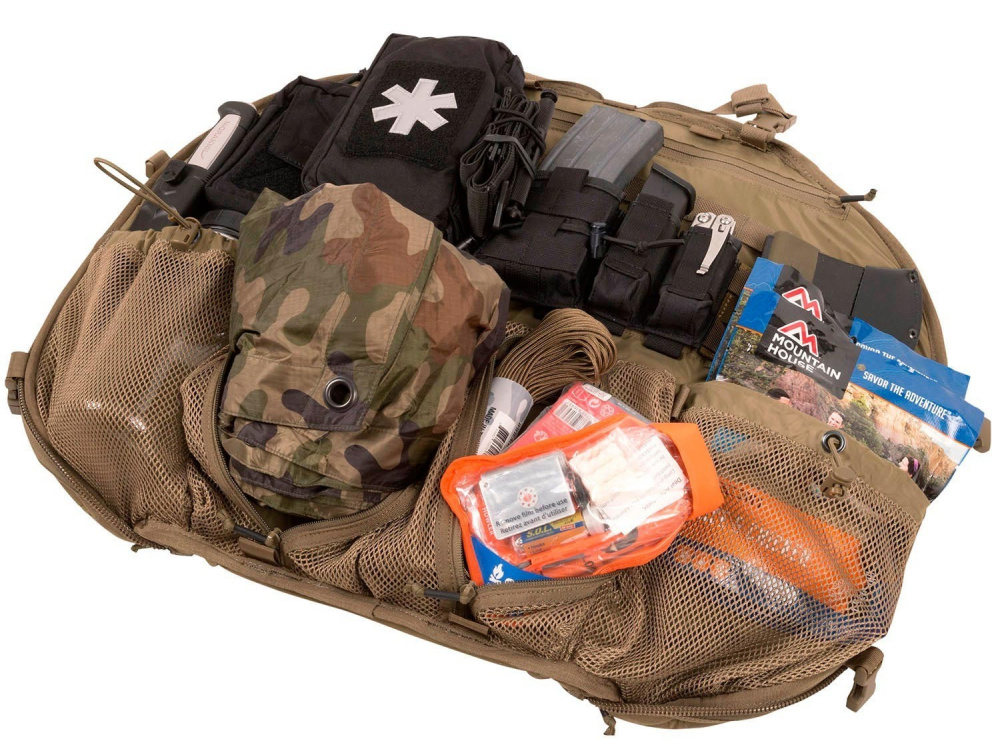 K dispozici je také další sedací podložka, kterou lze vyjmout z batohu. BOB má čtyři vnitřní síťované kapsy na větší předměty - dvě se stahovací šňůrkou a dvě na zip. Popruhy MOLLE / PALS nad nimi umožňují připevnění dalších předmětů, jako je nářadí (nože, pily, malé sekery), pouzdra na munici, soupravy na léky nebo pouzdra na organizéry (Navtel, Admin Pouch). Batoh pojme vše potřebné pro přežití v rychlém a snadném dosahu. Na vnější straně jsou dvě otevřené kapsy na láhev s vodou a celkem dvě kapsy se zipem na drobnosti.