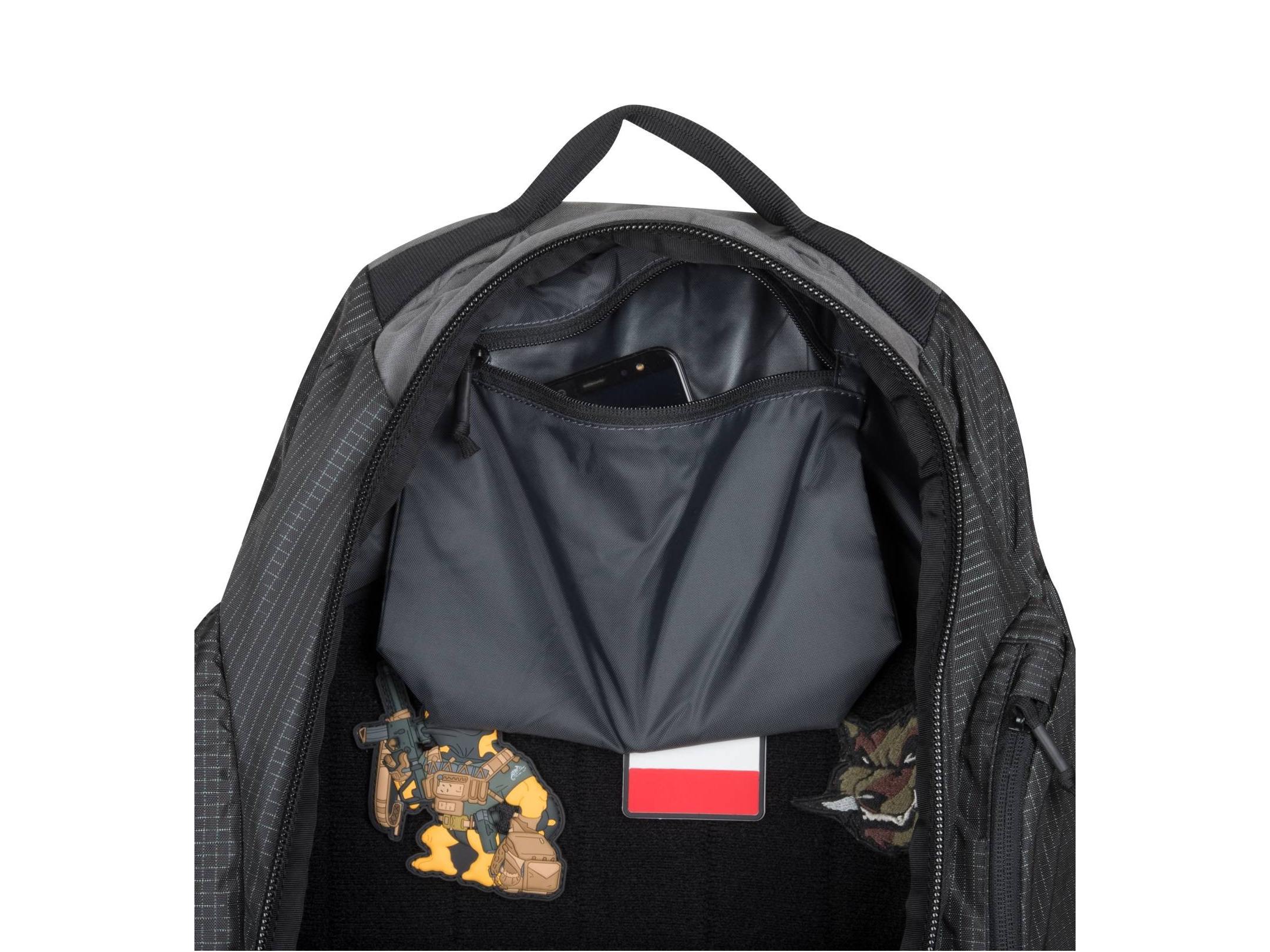 Když pracujete v utajení, dokážete splynout s davem, ale stále musíte mít možnost mít zbraň na dosah ruky. Proto je batoh Downtown vybaven speciální přihrádkou, do které se snadno a bezpečně vejde Vaše standardní servisní pistole, s možností téměř okamžitého tasení. Na vnější straně vypadá jako běžný civilní batoh, do kterého se vejde vše, co potřebujete. Balení neobsahuje žádné další popruhy MOLLE / PALS, smyčkové panely ani nic, co by vás mohlo prozradit. Vnitřek hlavní kapsy je pokryt měkkou velurovou látkou, kompatibilní s Versatile Insert System pro přizpůsobení. Balení má navíc speciální přihrádku, do které se vejde tvrdá balistická vložka.