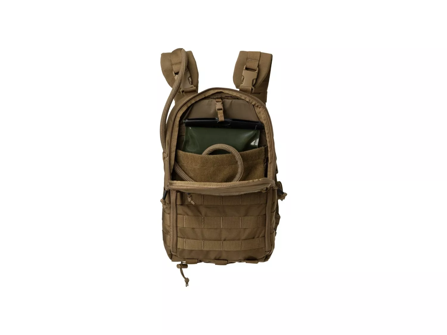 - Prostor pro hydratační vaky a vývody hadiček na obou stranách