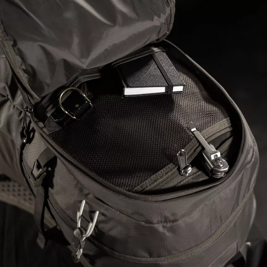 - Skrytá pláštěnka: Součástí balení je skrytá pláštěnka ve spodní kapse na zip. Nabízí vodotěsnost 3500 mm a udrží Vaše věci v suchu.