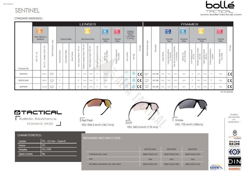Tyto sluneční brýle SENTINEL s balistickou ochranou certifikované podle STANAG 2920, EN166, EN170 a EN172 zajišťují maximální ochranu za všech okolností.