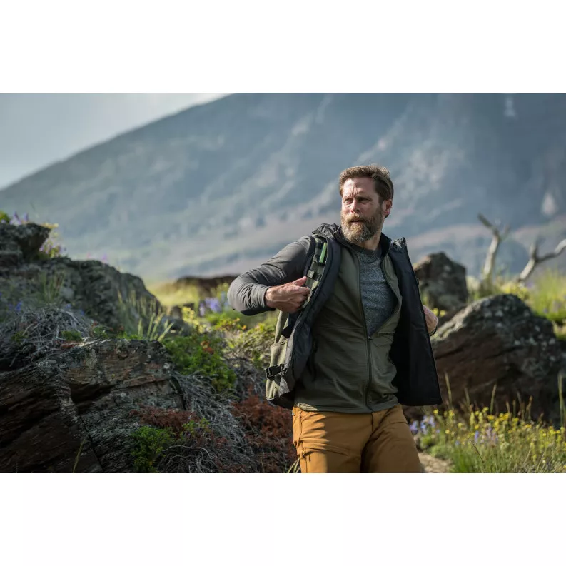 Bunda Adventure PrimaLoft® Insulated Jacket má tvarovanou kapuci s elastickým otevíráním a přední zip po celé délce s ochranou brady. Kapsy na ruce se zapínáním na zip a vnitřní kapsa zvyšují úložnou kapacitu. Pružné klíny a vnitřní šňůra na spodním lemu pomáhají udržet teplo.