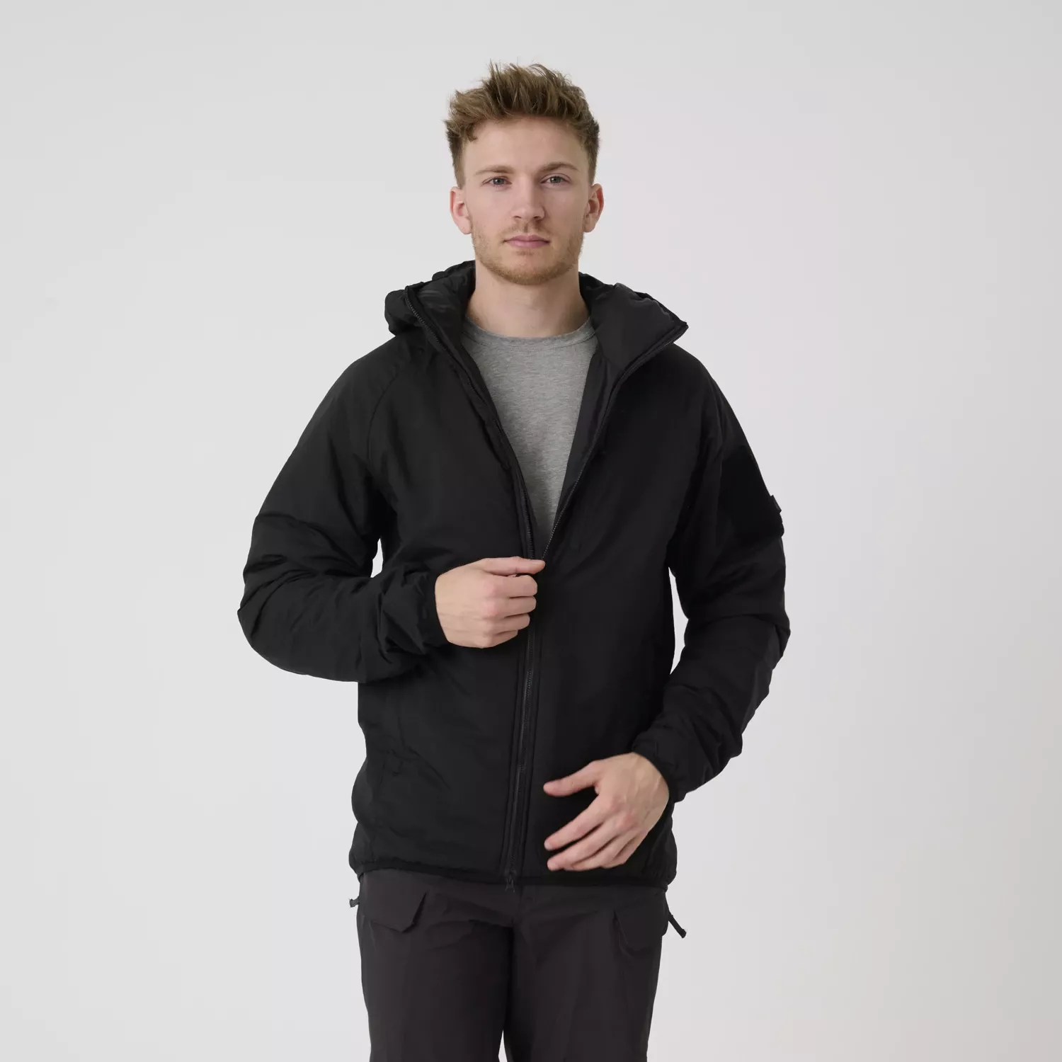 Bunda Wolfhound Hoodie je vynikající volbou pro ty, kteří aktivně tráví čas venku, bez ohledu na povětrnostní podmínky. Je lehká a funkční, navržena tak, aby chránila před chladem, větrem a lehkým deštěm. Je vyplněna syntetickou izolací Climashield™ Apex® s gramáží 67 g/m2 a nabízí vynikající tepelnou izolaci, i když je mokrá.