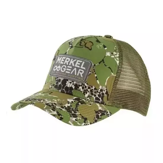 Na přední straně je vyzdobena tmavě šedá nášivka Merkel GEAR. V zadní části silný síťovaný materiál v olivovém provedení poskytuje potřebnou ventilaci pro všechny namáhavé outdoorové aktivity. Pevné zaklapávací zapínání na zadní straně kšiltovky není záměrně vyrobeno ze suchého zipu, aby nedocházelo k vyrušení zvěře hlasitou manipulací.