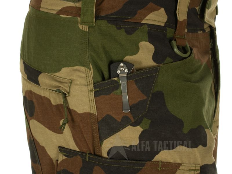 Padnoucí střih a vysoká odolnost je předurčují nejen na bojiště, ale i ke každodennímu nošení. Opasková část je ušita tak, aby bylo možno nosit i bezpečnostní, služební, jistící a rigovací opasky. Přední kapsy mají rychlý a snadný přístup. Dále jsou k dispozici stehenní kapsy s dostatkem prostoru pro vybavení, zásobníky a s další samostatnou kapsou na zip.
