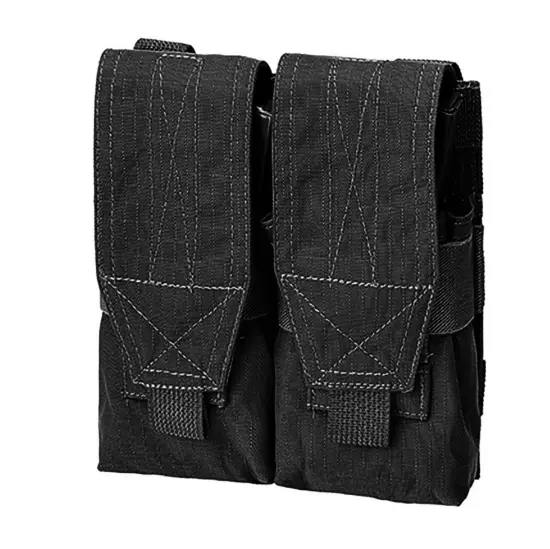 Dvojitá sumka na celkem 4 zásobníky M4 z kvalitního nylonu 1000D má voděodpudivou povrchovou úpravu. Na dně sumky jsou otvory pro odtok vody nebo propadnutí jiných nečistot. Sumka má MOLLE vazbu, která je zakončena dvěma cvoky, díky tomu je její nandání například na vestu velmi snadné, rychlé a pohodlné. Chlopeň, která překryje zásobníky při zavření sumky je připevněna suchým zipem, její délka se tedy dá variabilně zkracovat dle velikosti zásobníků.