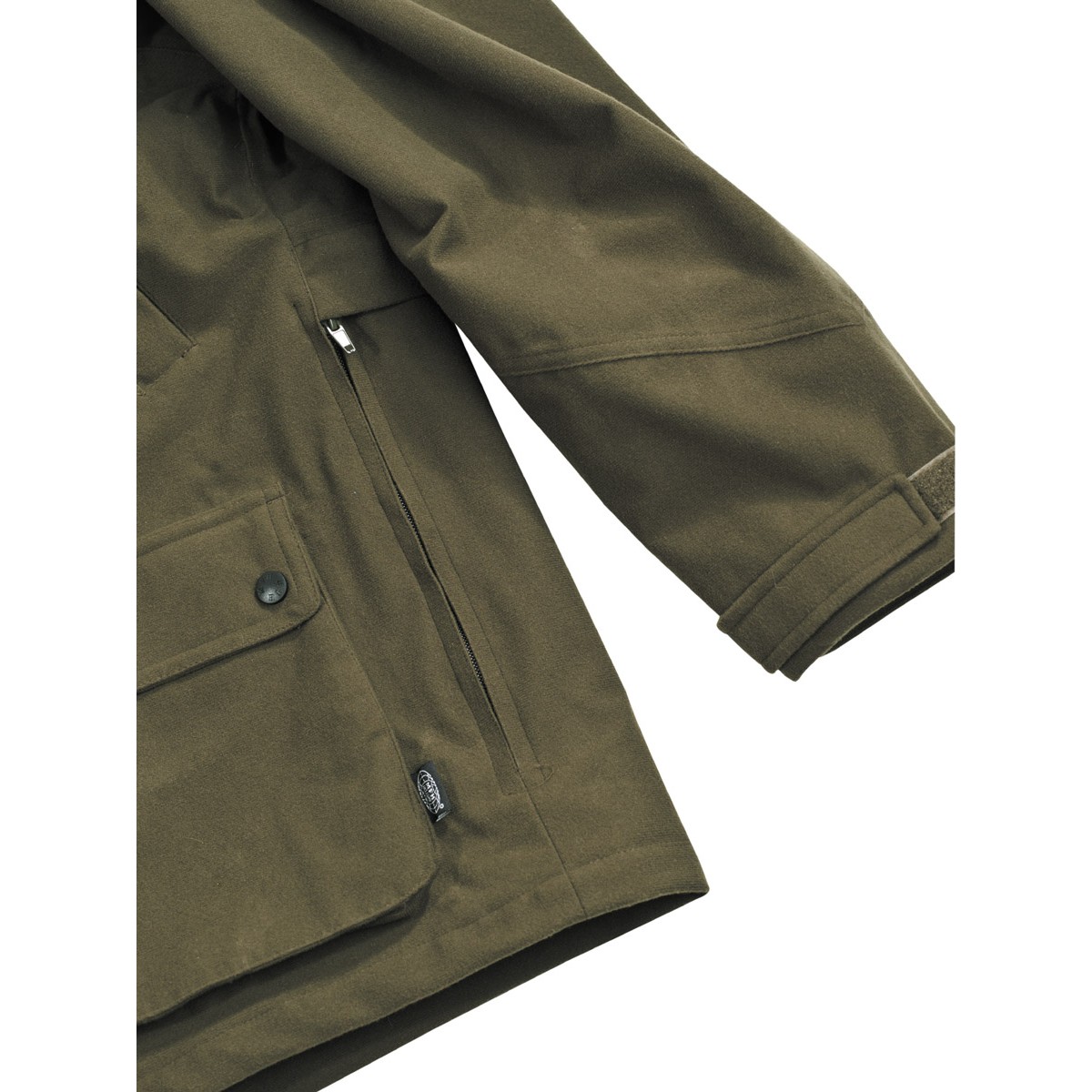 Prodyšná nepromokavá bunda s dvěma velkými kapsami vpředu se zapínáním a překlopením.