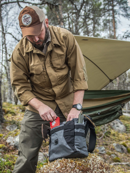 Nejmenší lékárnička Helikon pojme ty nejdůležitější náležitosti, jako jsou vyšetřovací rukavice, náplasti, či jednoduchá resuscitační maska. Gumou potažená rukojeť pomáhá při vytahování z váčku nebo kapsy, zatímco reflexní paramedický kříž umožňuje snadnou identifikaci.
