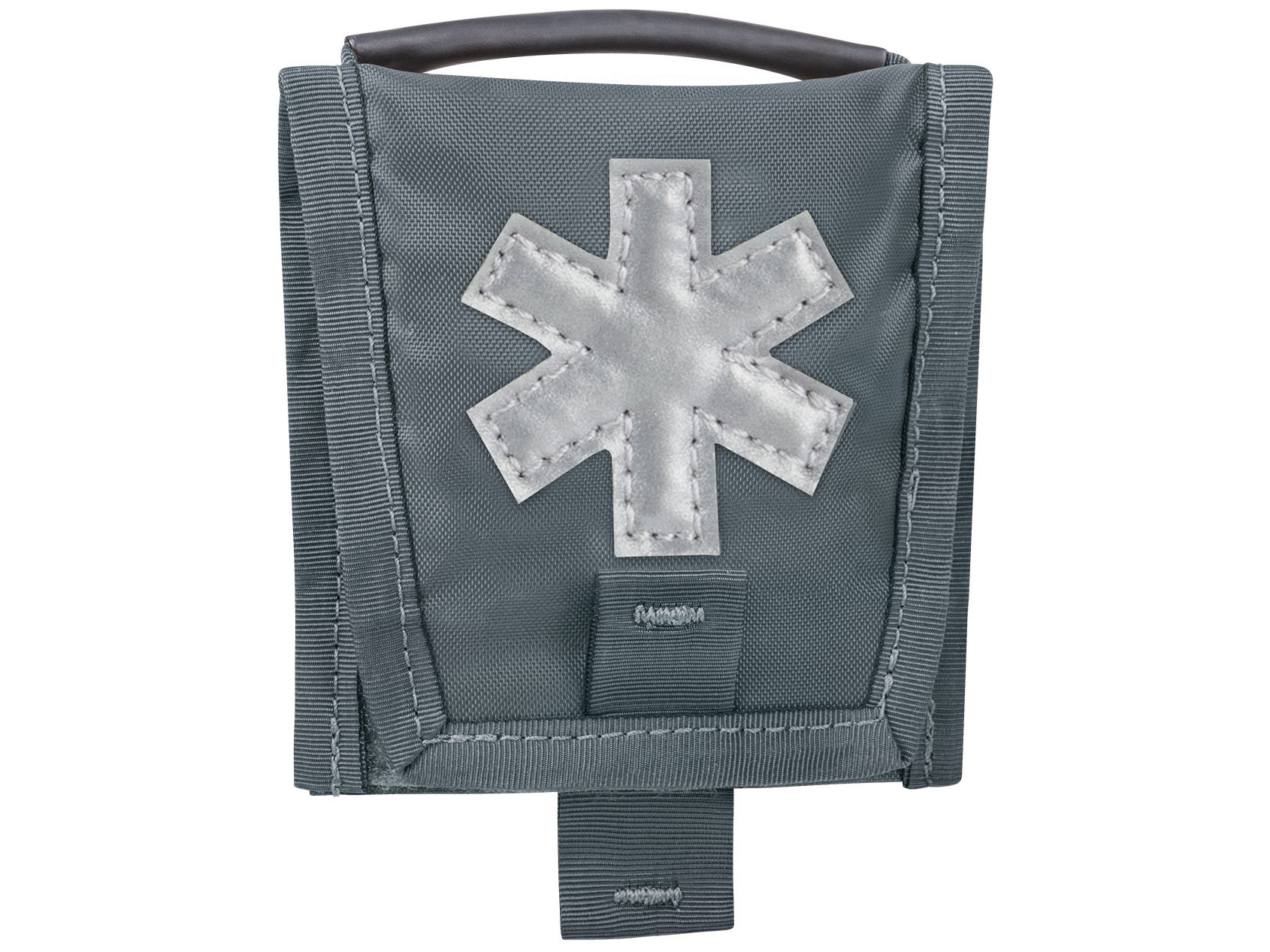 Nejmenší lékárnička Helikon pojme ty nejdůležitější náležitosti, jako jsou vyšetřovací rukavice, náplasti, či jednoduchá resuscitační maska. Gumou potažená rukojeť pomáhá při vytahování z váčku nebo kapsy, zatímco reflexní paramedický kříž umožňuje snadnou identifikaci.