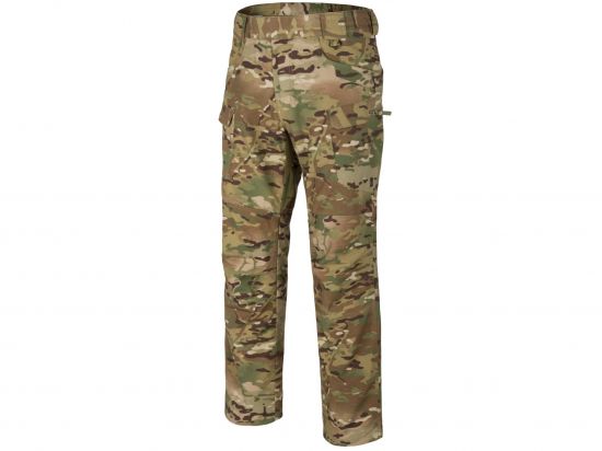 V návaznosti na popularitu Urban Tactical Pants® vydal Helikon jejich novou verzi - Urban Tactical Flex Pants®. I když je hlavní konstrukce kalhot stejná jako v UTP, dochází k několika zásadním změnám. Nejdůležitější změnou je látka - společnost Helikon se rozhodla použít nepružnou látku NyCo RipStop, o které je známo, že je jednou z nejlepších a nejodolnějších oděvních látek na trhu. Pro zachování svobody pohybu uživatelů byly na namáhaná místa přidány elastické panely VersaStretch®. Rozložení střihu a kapes použité v těchto kalhotách udržuje civilní vzhled při zachování plné funkčnosti bojových kalhot. Elastický opasek se suchým zipem umožňuje snadné nastavení. Široká poutka na opasek umožňují šířku až 50 mm. Díky specifickému rozložením kapes lze vybavení umístit blízko kolem boků a pasu. Dvě přední kapsy se suchým zipem jsou dostatečně velké, aby unesly smartphone nebo zásobník na pušky AR / AK. Kapsy na zip na stehně vypadají ploše, přesto umožňují snadné přenášení sáčků nebo peněženek.