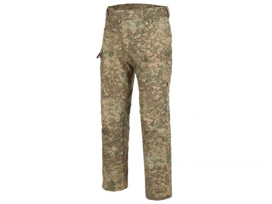 V návaznosti na popularitu Urban Tactical Pants® vydal Helikon jejich novou verzi - Urban Tactical Flex Pants®. I když je hlavní konstrukce kalhot stejná jako v UTP, dochází k několika zásadním změnám. Nejdůležitější změnou je látka - společnost Helikon se rozhodla použít nepružnou látku NyCo RipStop, o které je známo, že je jednou z nejlepších a nejodolnějších oděvních látek na trhu. Pro zachování svobody pohybu uživatelů byly na namáhaná místa přidány elastické panely VersaStretch®. Rozložení střihu a kapes použité v těchto kalhotách udržuje civilní vzhled při zachování plné funkčnosti bojových kalhot. Elastický opasek se suchým zipem umožňuje snadné nastavení. Široká poutka na opasek umožňují šířku až 50 mm. Díky specifickému rozložením kapes lze vybavení umístit blízko kolem boků a pasu. Dvě přední kapsy se suchým zipem jsou dostatečně velké, aby unesly smartphone nebo zásobník na pušky AR / AK. Kapsy na zip na stehně vypadají ploše, přesto umožňují snadné přenášení sáčků nebo peněženek.