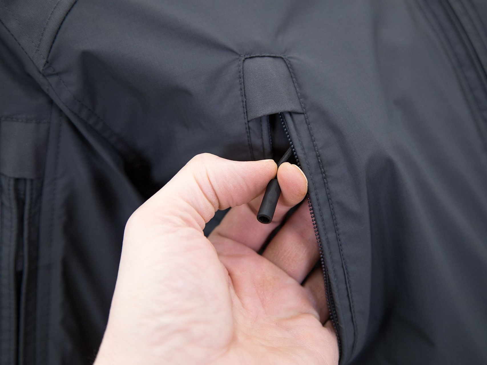 - Dvoucestný pásmový přední zip s klopou a ochranou brady