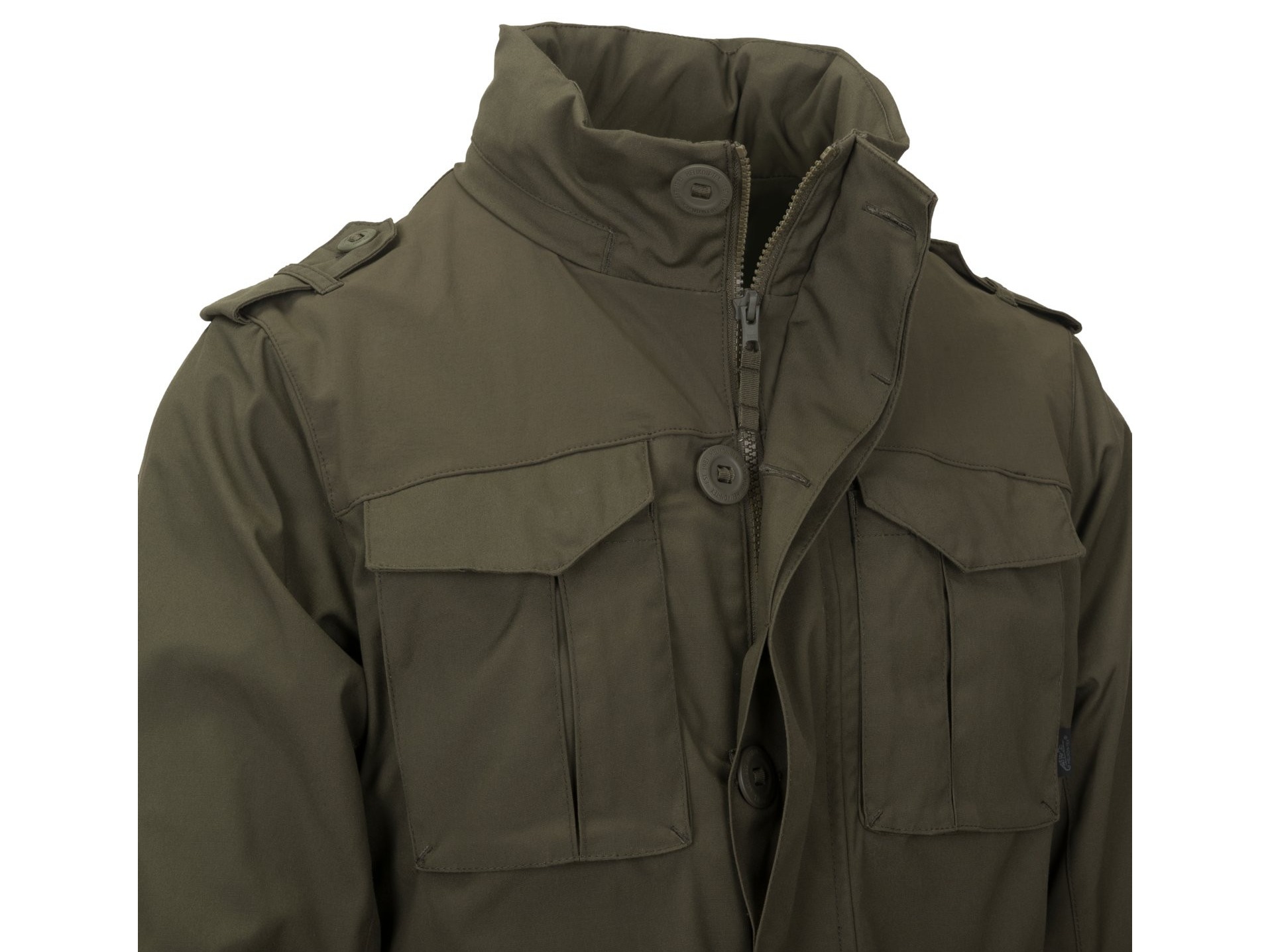Bunda Helikon-Tex Covert M65 je moderní polní bunda založená na ikonickém vzoru M65. Bude se skvěle hodit pro skryté operace, kde je důležitá diskrétnost a nekonvenční metody práce. Je vybavena funkčními vnějšími kapsami a umožňuje vám pohodlně nosit věci nezbytné pro výkon služby a sebeobranu. Díky použití odolné látky DuraCanvas® bude také vynikající volbou pro každodenní použití, zejména v podzimním a zimním období, kdy bude chránit uživatele před slabým deštěm a větrem. Unikátní patent použitý v bundě M65 je kapsa, kterou lze odepnout a použít jako samostatnou brašnu na dokumenty nebo telefon. Uvnitř, symetricky na levé a pravé straně, jsou kapsy na zásobníky. Dvě vnější kapsy po stranách mohou sloužit jako improvizované skládací vaky. Tato klasická vojenská bunda byla dodatečně vyztužena na místech vystavených poškození a vybavena kapucí skrytou v límci. Přední část je zapínána silnými kanadskými knoflíky a „odtrhávacím“ zipem, který umožňuje okamžité odepnutí bundy.