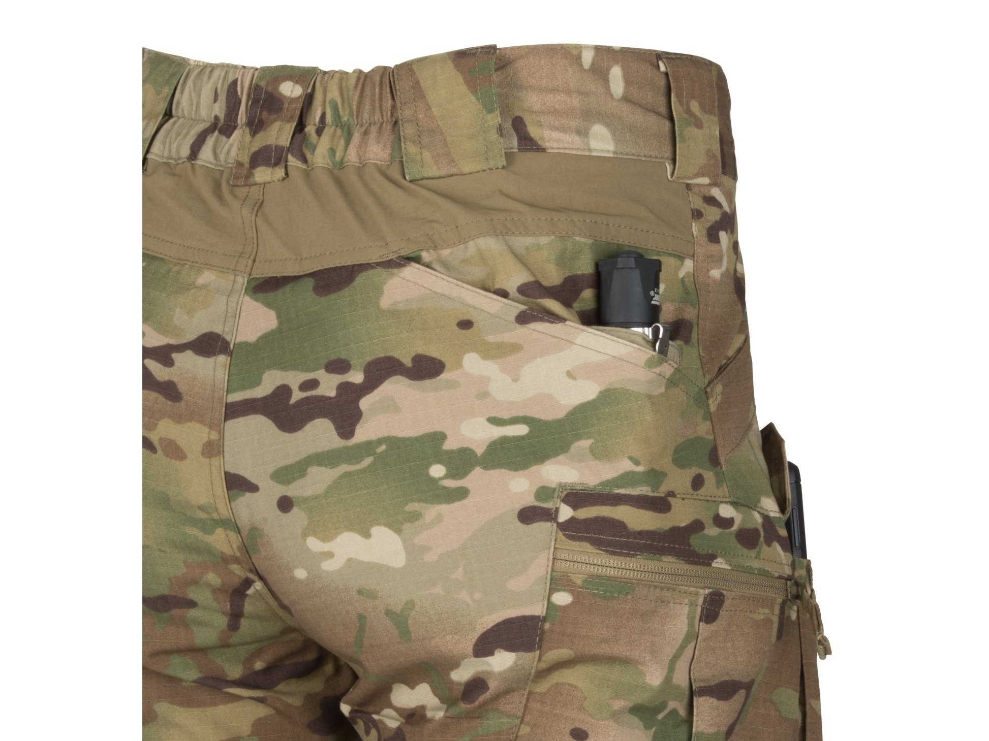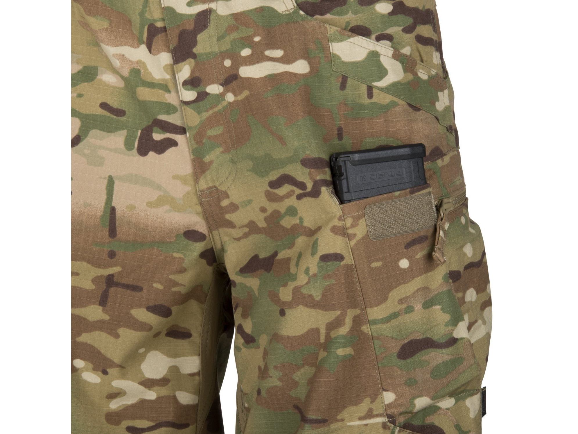 Chytře promyšlené rozmístění kapes umožňují uživateli nosit vybavení co nejblíže k těžišti těla - okolo pasu a stehen. Váha jakéhokoli nákladu je rovnoměrně rozložená. Okraje předních kapes jsou navíc zesíleny pro bezpečné nošení nožů na sponách. Dvě kapsy na suchý zip na přední straně stehen jsou ideální pro přenášení telefonu, ale snadno se do nich vejde i zásobník AR / AK. Na stehnech se také nachází nákladní kapsy s YKK zipy, ve kterých můžete bezpečně přepravovat větší předměty. Abyste se mohli bez omezení pohybovat, mají kalhoty vzadu a v rozkroku klínky z elastické látky VersaStretch®.