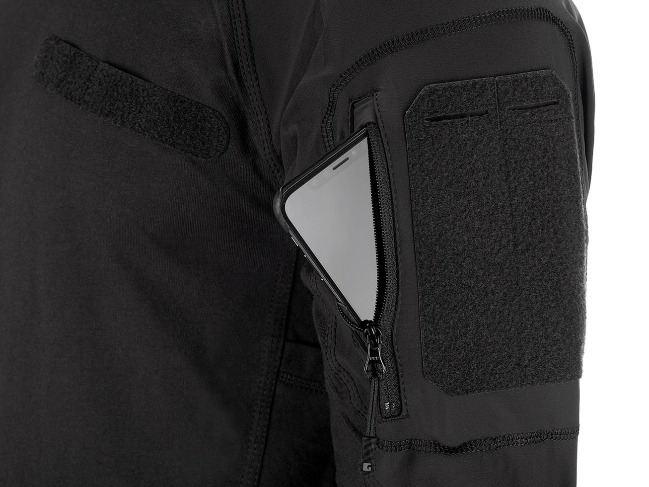 Technické provedení rukávů z velmi odolného, pružného a vodoodpudivého materiálu zajišťuje extrémně vysokou volnost pohybu. Dvě kapsy na horním rameni poskytují dostatečný úložný prostor, zatímco povrchy smyček nabízejí prostor pro identifikační odznaky a dvě přihrádky pro psací potřeby.