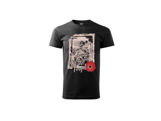 Kvalitní triko s potiskem na přední straně Lest We Forget. Tisk je velmi kvalitní, neopere se a nesloupává se.