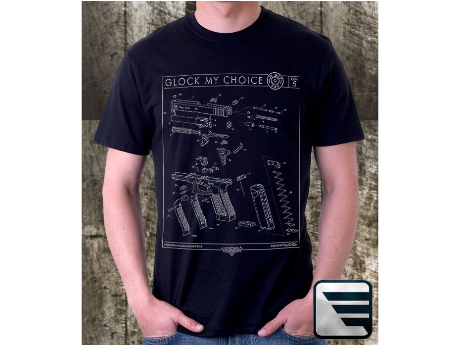 Kvalitní triko s potiskem na přední straně Glock Schéma. Tisk je velmi kvalitní, neopere se a nesloupává se.