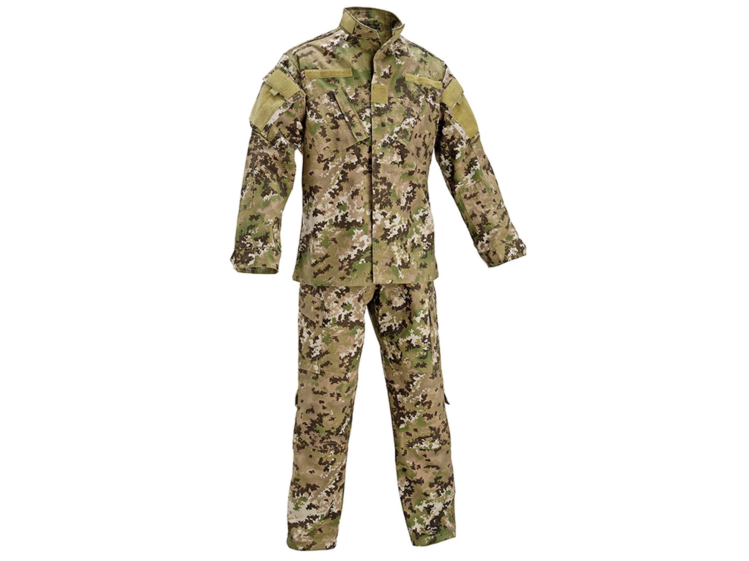 Kalhoty a blůza v střihu ACU kamufláž Multiland. Vyrobeno z odolné prodyšné látky, která vydrží velké namáhání. Oproti uniformám v BDU střihu jsou zde řady vylepšení, a to: