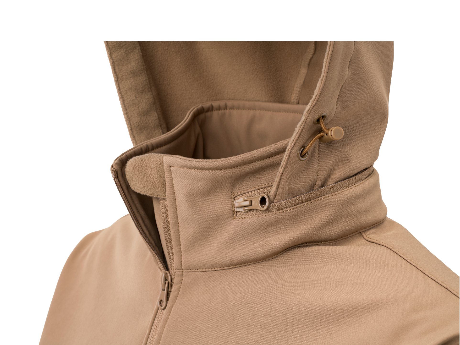 Taktická softshellová bunda s odepínací kapucí.