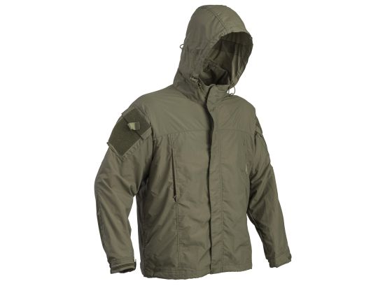 Lehká větruvzdorná a vodoodpudivá bunda z 98% nylonu a 2% spandexu poskytuje maximální pohodlí a dá se složit do sebe, aby se pohodlněji přepravovala pomocí systému MOLLE. Vnitřní síťovina zajišťuje prodyšnost a otvory v podpažním zipu zlepšují její funkčnost. Kapuce je sklopná a na obou ramenech jsou všité panely na suchý zip pro upevnění identifikačních nášivek. Hlavní zip je chráněn zevnitř i zvenčí svislou klopou ze stejného materiálu jako bunda. Bunda dále disponuje elastickými manžetami se zapínáním na suchý zip a nastavitelným pasem se stahovákem na zip.