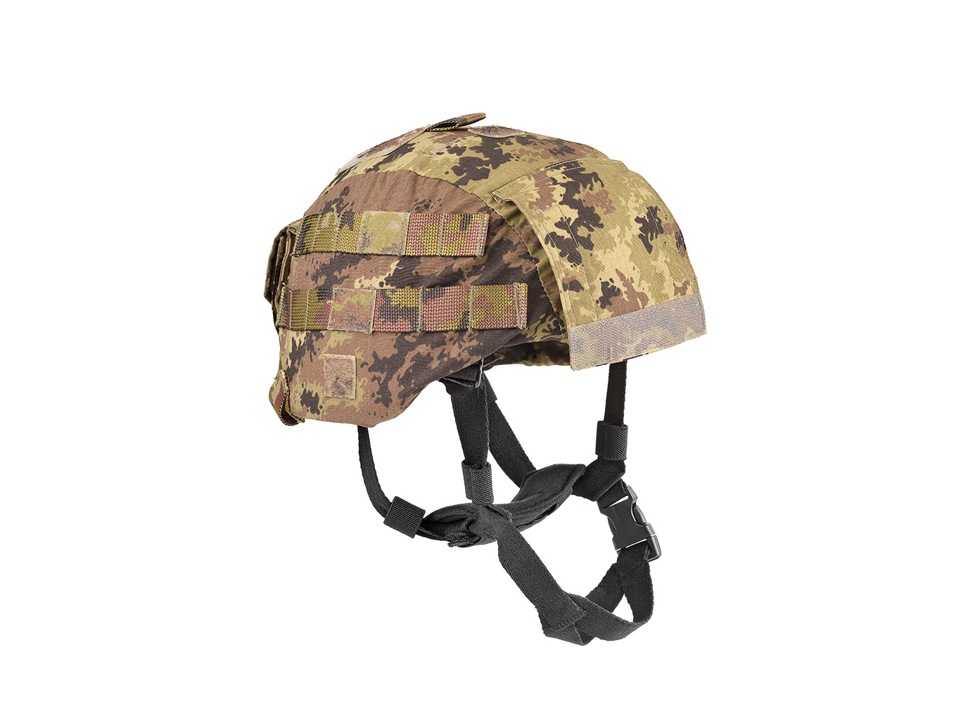 Navrženo a vyrobeno pro italskou armádu. Materiál RIP STOP. Vybaveno 7 dvojitými vnitřními pásky na suchý zip pro zajištění přilby a polstrováním, přední kapsou na rukávu a zadní kapsou.