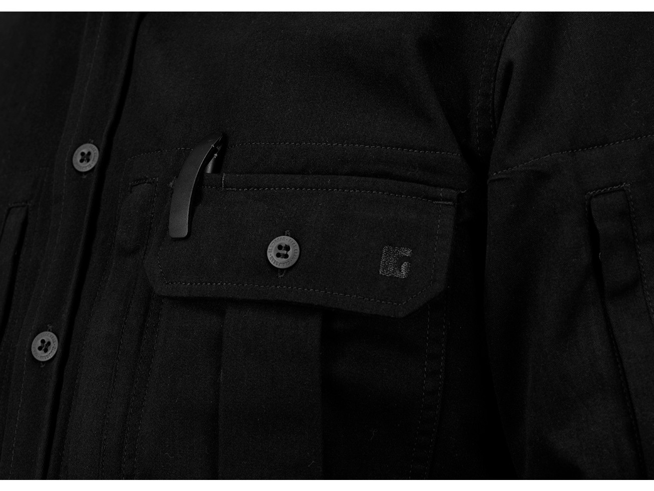 Košile rakouského výrobce Clawgear s dlouhým rukávem a dvěma rozšířenými náprsními kapsami. Rukávy lze snadno ohrnout a připnout pomocí knoflíku. Na levém rameni se nachází kapsa na zip např. na telefon.