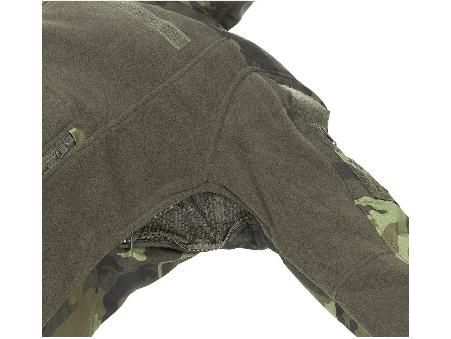 Fleecová bunda vhodná do chladného počasí. Zadní část rukávů, ramena a záda jsou vyztužena rip-stopovou tkaninou pro větší odolnost vůči vodě a mechanickým poškozením. Oblasti rukávů jsou vyztužené tam, kde dochází ke kontaktu se zemí v případě ležení, nebo plazení. Zodolněná ramena a záda prodlužují životnost a zvyšují komfort v případě nesení batohu, nebo taktické vesty. Do oblasti ramen, v případě deště, nejvíce dopadá voda, a díky rip-stopové tkanině se zvyšuje odolnost vůči promočení. Všechny zipy jsou od firmy YKK. Bunda má v oblasti podpaždí uzavíratelné odvětrávací otvory pro optimální regulaci při zvýšené námaze a zahřívání.