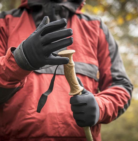 Manžeta má stahovací šňůrku pro větší pohodlí a na palci a ukazováčku je látka, která umožňuje použití dotykových obrazovek. Díky přídavnému poutku je lze snadno nasadit na ruce a nasazené přezky umožňují připevnit rukavice na opasek nebo batoh.