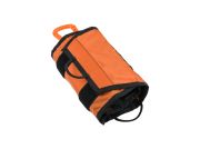 Vyrobeno z lehké, ale odolné tkaniny. Srolovatelné a zajištěné suchým zipem. Na vnitřní straně jsou tři síťované kapsy na zip a elastická poutka. Tři poutka na šňůru umožňují zavěsit organizér pro snadnější přístup k přenášeným nezbytnostem.
