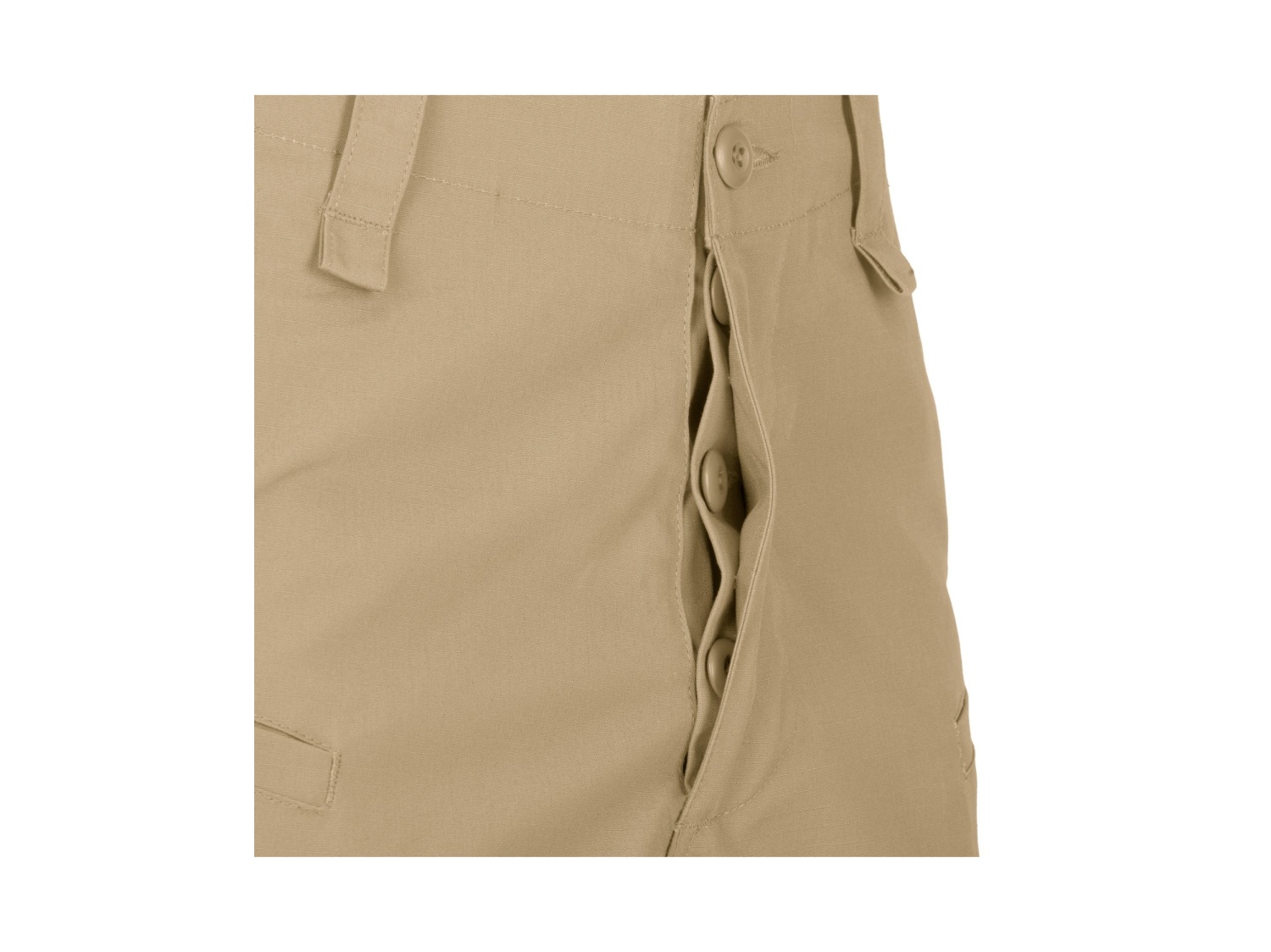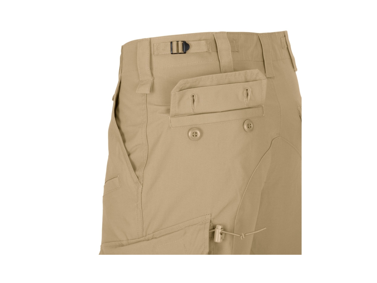 - Dvě stehenní cargo kapsy s chlopněmi na suchý zip, knoflíkem a stahovací šňůrkou