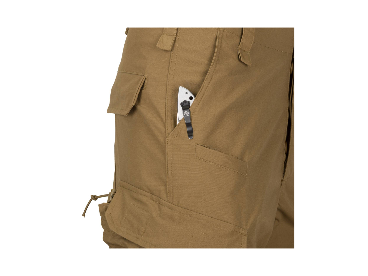Malé přední kapsy pojmou osobní věci, jako je baterka, zavírací nůž nebo extra zásobník na pistoli. Lýtkové kapsy mohou obsahovat polní obvaz nebo extra zásobník na pušku, přístupný při sezení ve vozidle. Řada CPU® je jedním z nejoblíbenějších a nejprodávanějších produktů výrobce Helikon-Tex.