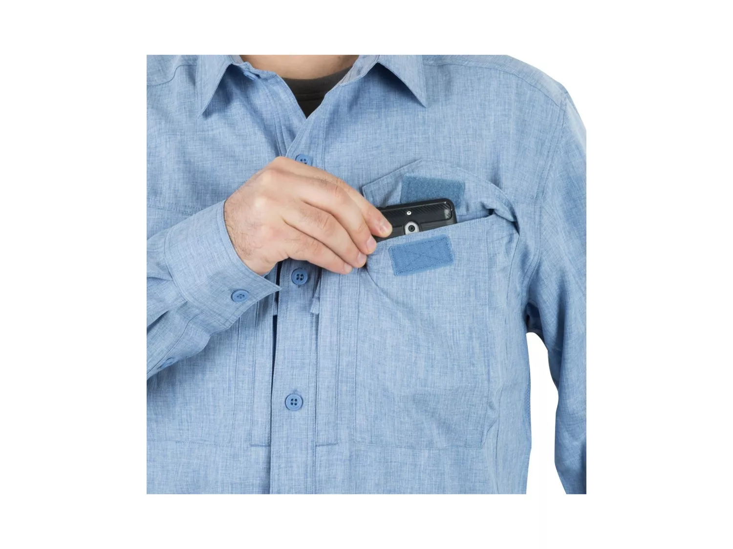 Vyrobeno z lehké, elastické polyesterové tkaniny. Tato rychleschnoucí tkanina poskytuje skvělou prodyšnost, zatímco index UPF30 vám poskytuje správnou UV ochranu. Celkový střih košile je stejný jako u klasických košil Defender Mk2. Košile se zapíná na decentní knoflíky značky Helikon-Tex®. Na hrudi jsou dvě klopové kapsy uzavíratelné suchými zipy. Pod nimi jsou další ploché kapsy uzavíratelné YKK® zipy. Elegantní vzhled košile z ní udělá skvělou volbu pro každou příležitost.