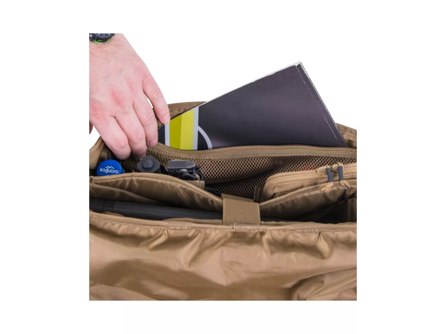 Návrháři věnovali zvláštní pozornost vnitřnímu uspořádání kapes a komor městské tašky. Samostatná, podšitá a suchým zipem uzavíratelná kapsa bezpečně ochrání notebook. Kapsa na zip pod klopou obsahuje panel na suchý zip, kompatibilní s Versatile Insert System. Samostatná vnější kapsa na zip uvnitř klopy umožňuje přístup k často používaným věcem, aniž byste museli klopu otevírat. Panel se suchým zipem lze použít pro personalizaci. Na zadní straně tašky, ze strany těla, je další diskrétní kapsa na zip. Případného zloděje neláká, když je taška blízko těla, kapsa je tedy velice bezpečná a přístup k ní je rovněž omezený. Pro další ochranu obsahu můžete kapsu naplnit jedním z pouzder Helikon kompatibilních s VIS.