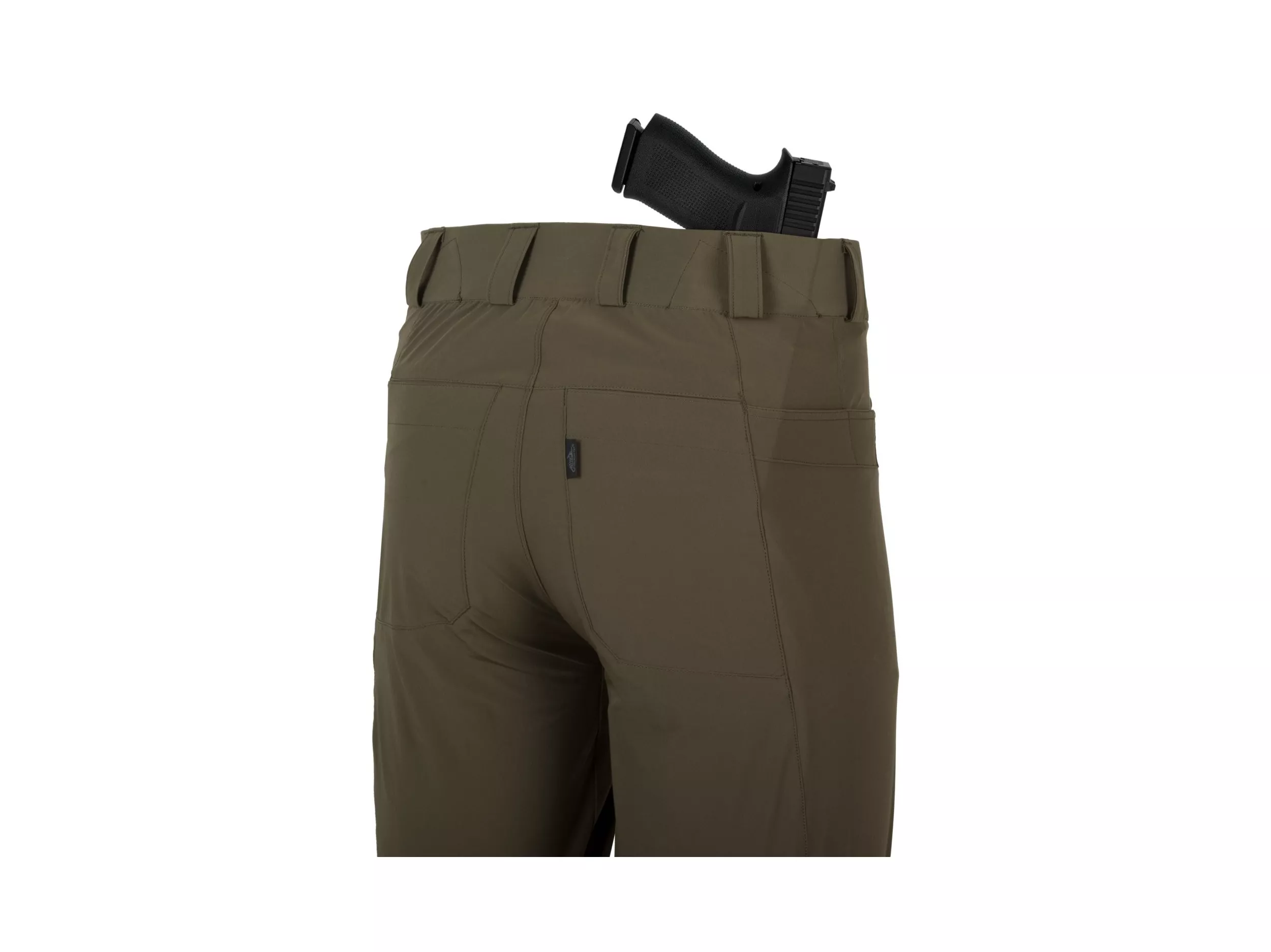 Široká poutka na opasek udrží opasek i s nasazeným pouzdrem. Kombinace střihu kalhot spolu s elastickou látkou dodává obrovskou volnost pohybu. Kalhoty jsou vyrobeny z lehčí verze tkaniny VersaStretch, která poskytuje ještě větší prodyšnost v horkých dnech. CTP® vypadají skvěle jak se sportovní bundou, tak s klasickou mikinou s kapucí.