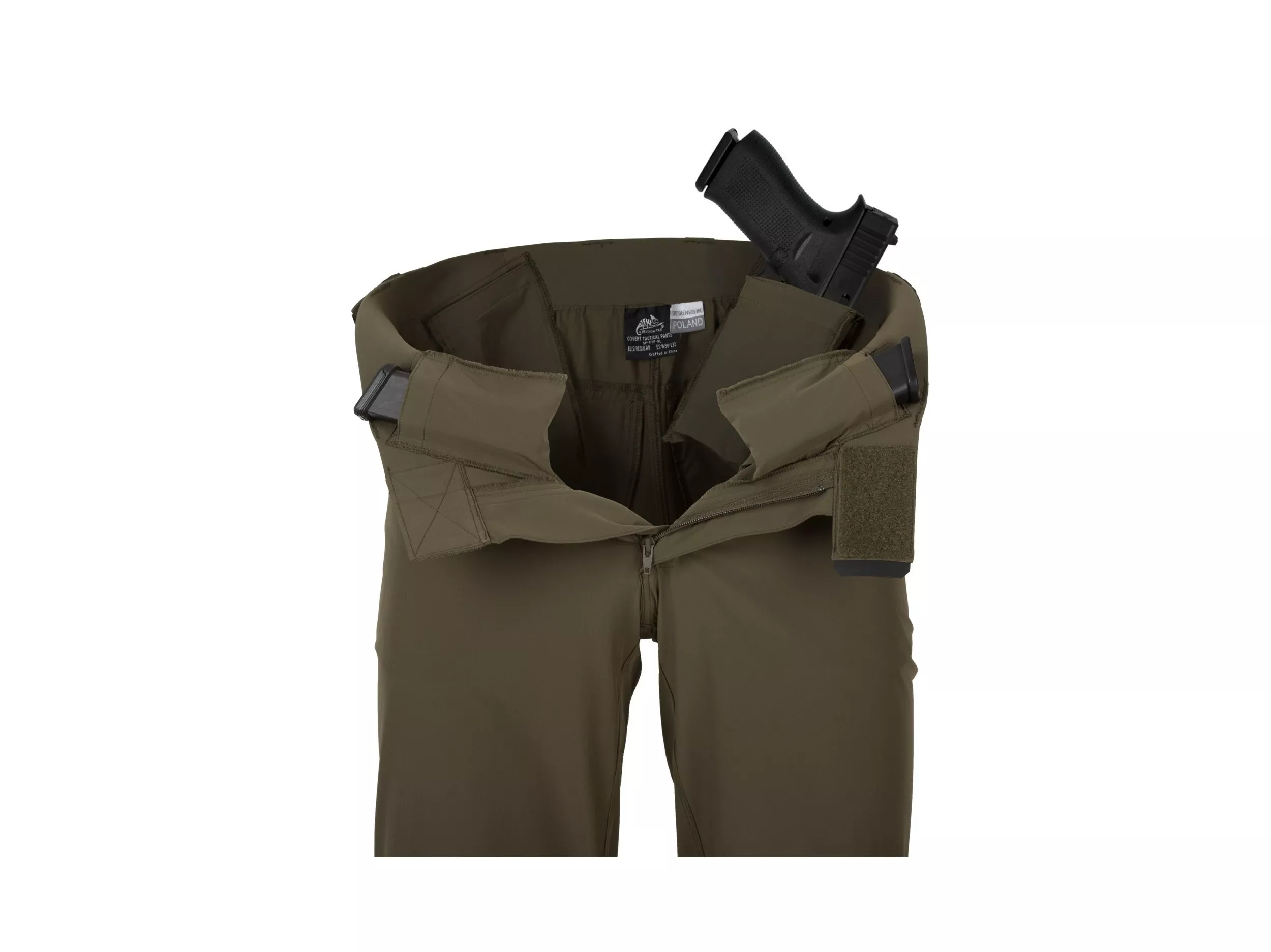 Covert Tactical Pants® jsou skvělé kalhoty pro každý den - diskrétní a splývající, přesto funkční. Všechny taktické prvky byly důmyslně skryty. Uvnitř jsou všity čtyři kapsy na zásobník, pouzdro nebo cennosti (dvě vpředu, dvě po stranách). K dispozici je šest vnějších kapes, navržených speciálně pro tento model kalhot, pro pohodlné nošení věcí EDC.