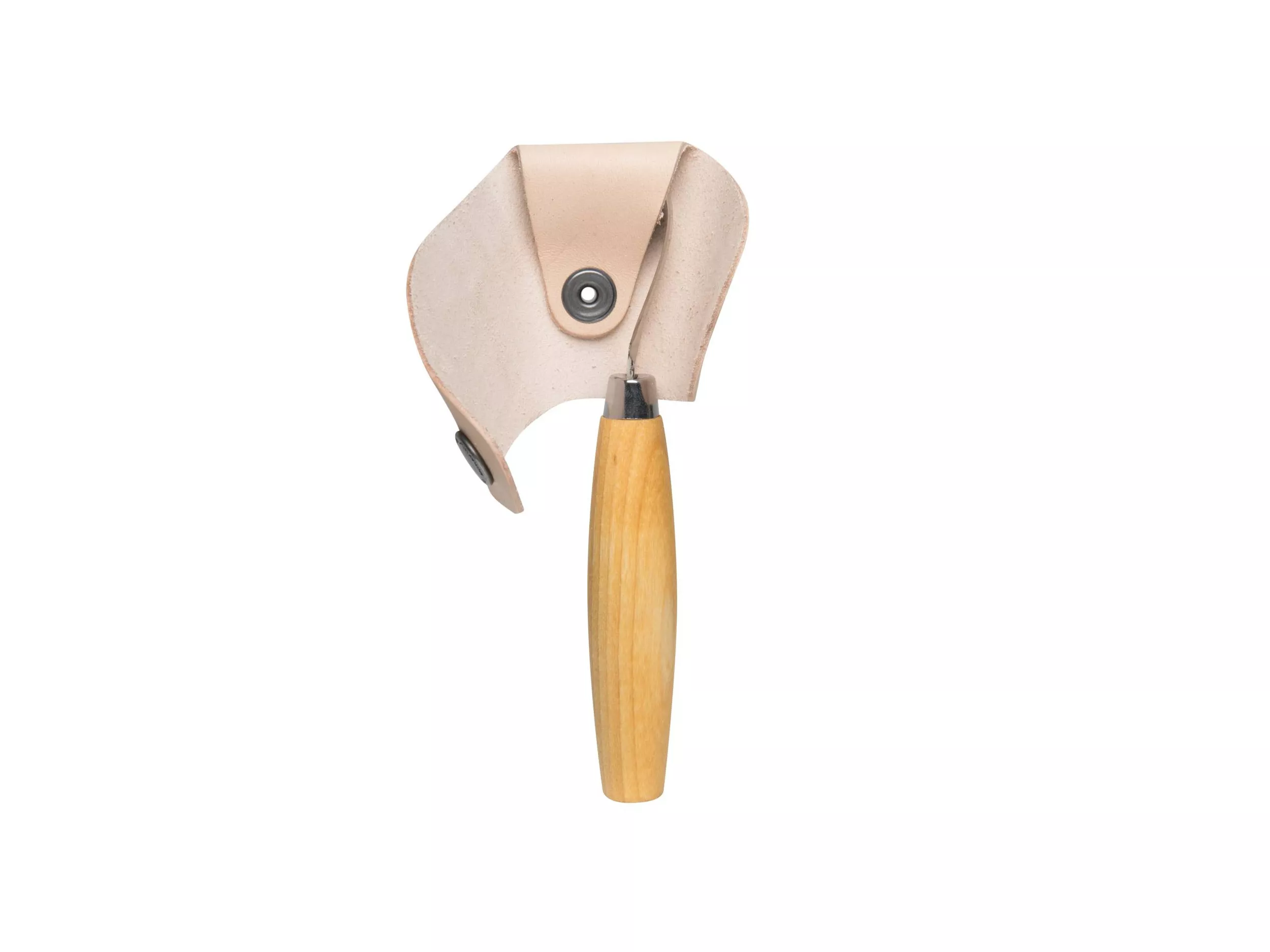 Pro ochranu Vás i háku je volitelně součástí balení jednoduchá, důmyslně navržená ochrana ostří, vyrobená ze švédské kůže vyčiněné rostlinami.