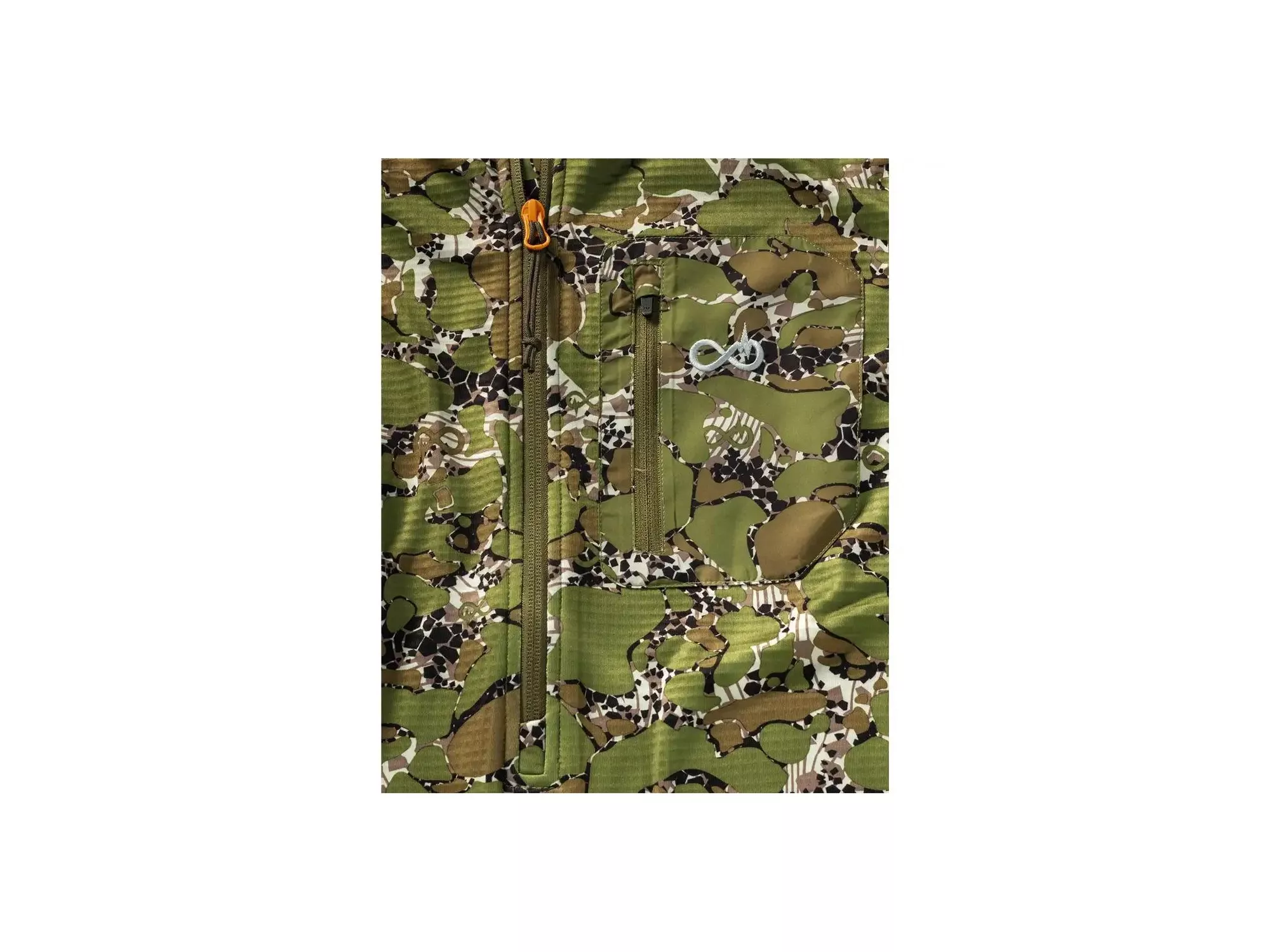 Košile MERKEL GEAR Infinity Forest v maskovacím potisku je perfektní maskovací možnost pro všechny druhy lovu v zalesněných oblastech. Absolutní novinkou v řadě MerkelGEAR je použitá fleecová tkanina. Použitá tkanina je obzvláště kvalitní, extrémně prodyšná tkanina o hustotě 260 g/m². Fleece vlna je opatřena ekologicky nezávadným vodoodpudivým zátěrem a také má povrchovou úpravu pohlcující zápach od švýcarského výrobce HeiQ®. Tato fleecová bunda je nepostradatelným společníkem pro všechny druhy lovu doma i v zahraničí. Skutečně všestranná střední vrstva, kterou lze nosit přes první vrstvu merino brzy ráno nebo večer v létě a je úžasně lehkou střední vrstvou po zbytek roku.