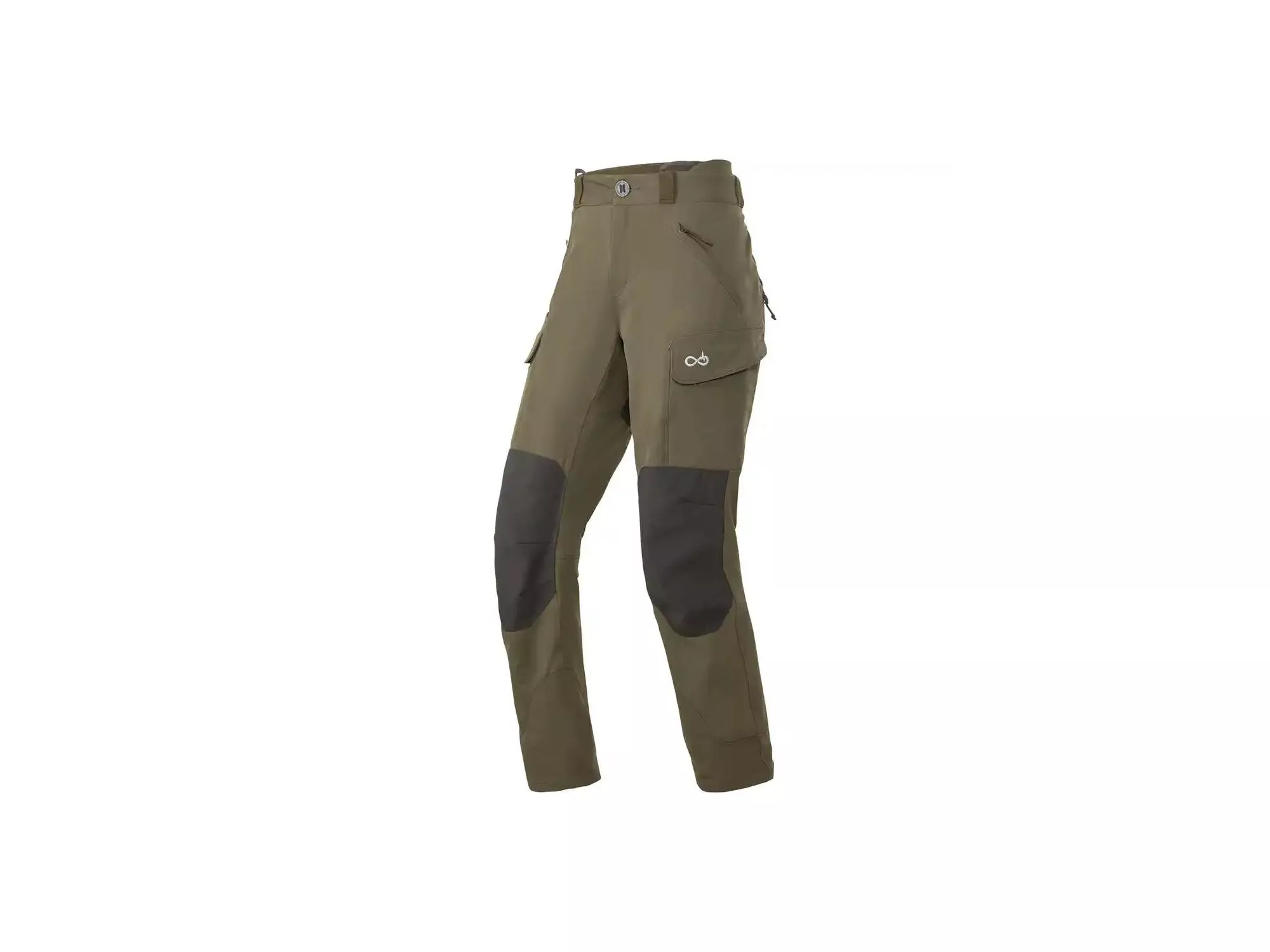 Pohodlné jako outdoorové kalhoty, přesto dostatečně široké s dvojitými předtvarovanými koleny a anatomicky optimálně umístěnými nákladními kapsami. Pas je vycpaný distanční tkaninou a nabízí integrované smyčky pro volitelně dostupné podvazky. Kalhoty mají dva knoflíky s dlouhou životností a spoustu pevných poutek na opasek, dále silikonový povlak na vnitřní straně pasu. K dispozici jsou 2 velké boční kapsy na zip a jedna zadní kapsa na zip. Nákladní kapsy jsou lemovány měkkou tkaninou, na kterou lze připevnit nášivky. Pravá nákladní kapsa má navíc všitou menší kapsu.