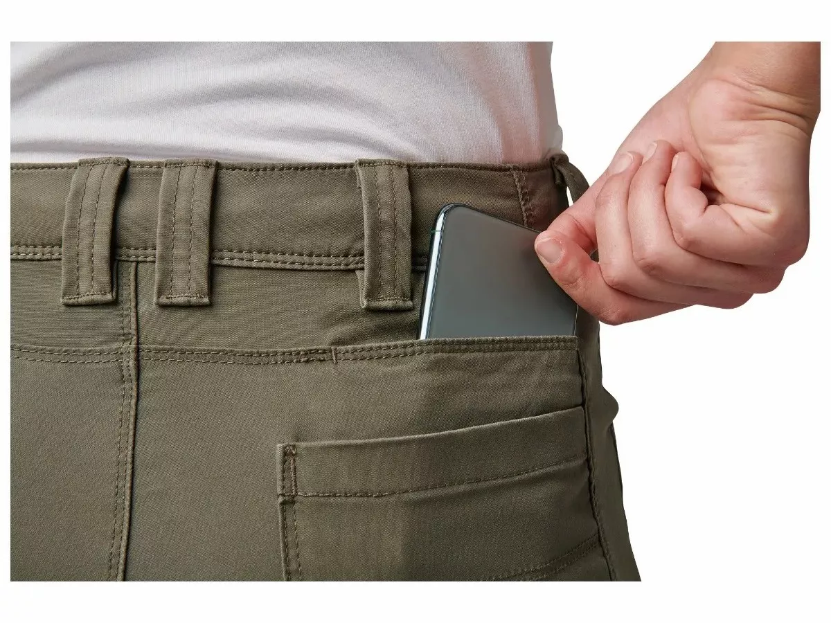 Účelové kalhoty pro ženu na misi. Přední a zadní kapsy, zadní praktické kapsy, nízkoprofilové cargo kapsy se skrytou vnitřní kapsou a skryté kapsy na klíče od pout uvnitř zadní části pasu a levého lemu tvoří celkem 8 kapes.