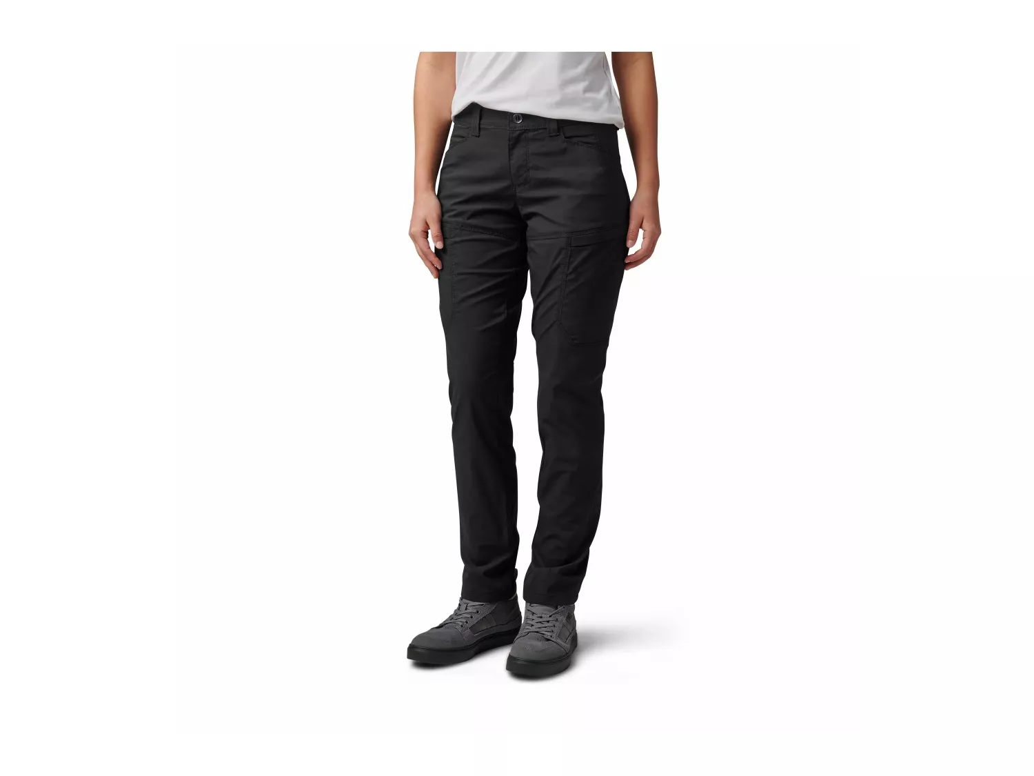 Účelové kalhoty pro ženu na misi. Přední a zadní kapsy, zadní praktické kapsy, nízkoprofilové cargo kapsy se skrytou vnitřní kapsou a skryté kapsy na klíče od pout uvnitř zadní části pasu a levého lemu tvoří celkem 8 kapes.