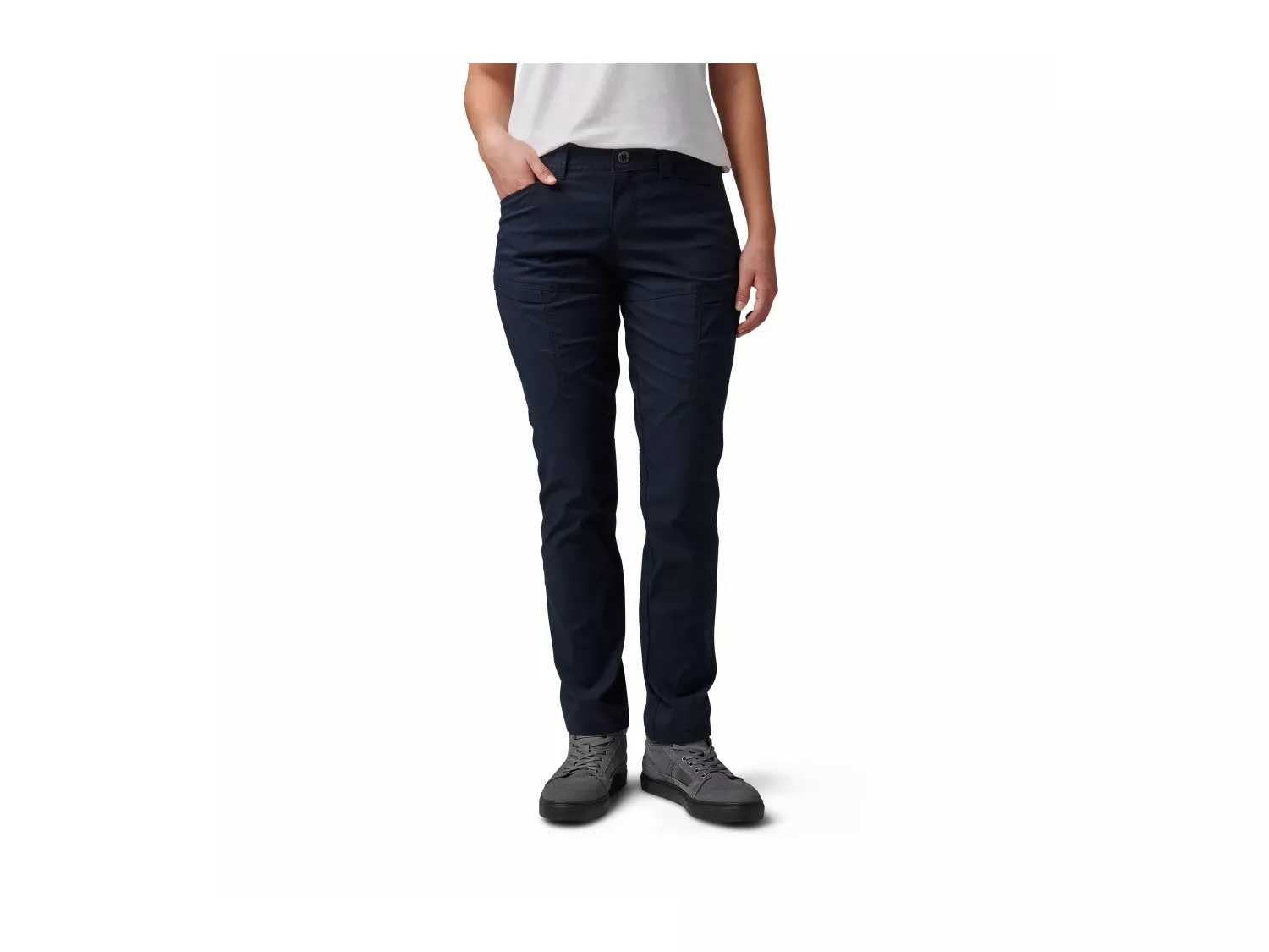 Účelové kalhoty pro ženu na misi. Přední a zadní kapsy, zadní praktické kapsy, nízkoprofilové cargo kapsy se skrytou vnitřní kapsou a skryté kapsy na klíče od pout uvnitř zadní části pasu a levého lemu tvoří celkem 8 kapes.